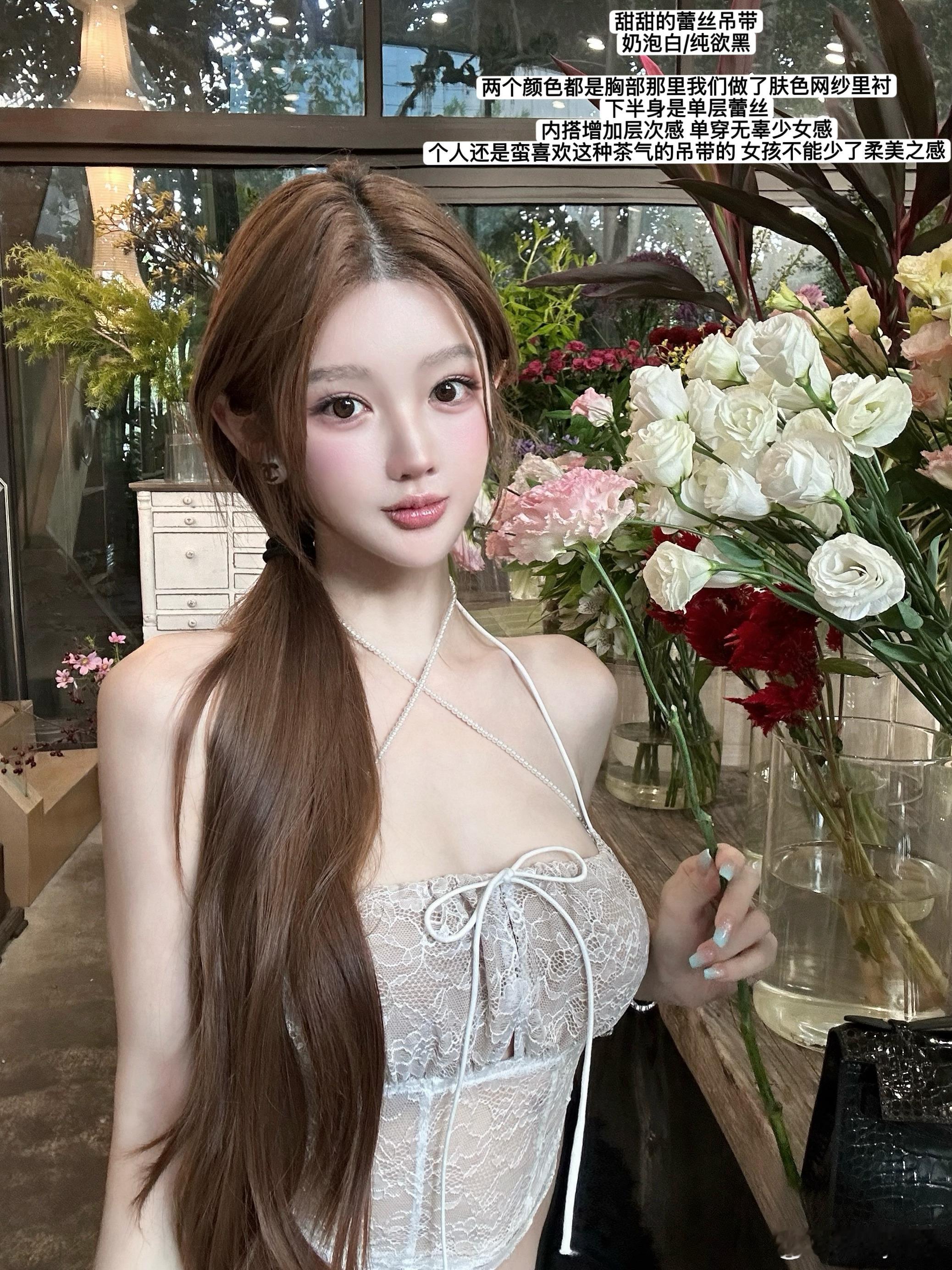 梨花小吊带单穿不简单内搭有细节每一串珍珠都是我们自己串的哦为了保证品质喜欢黑