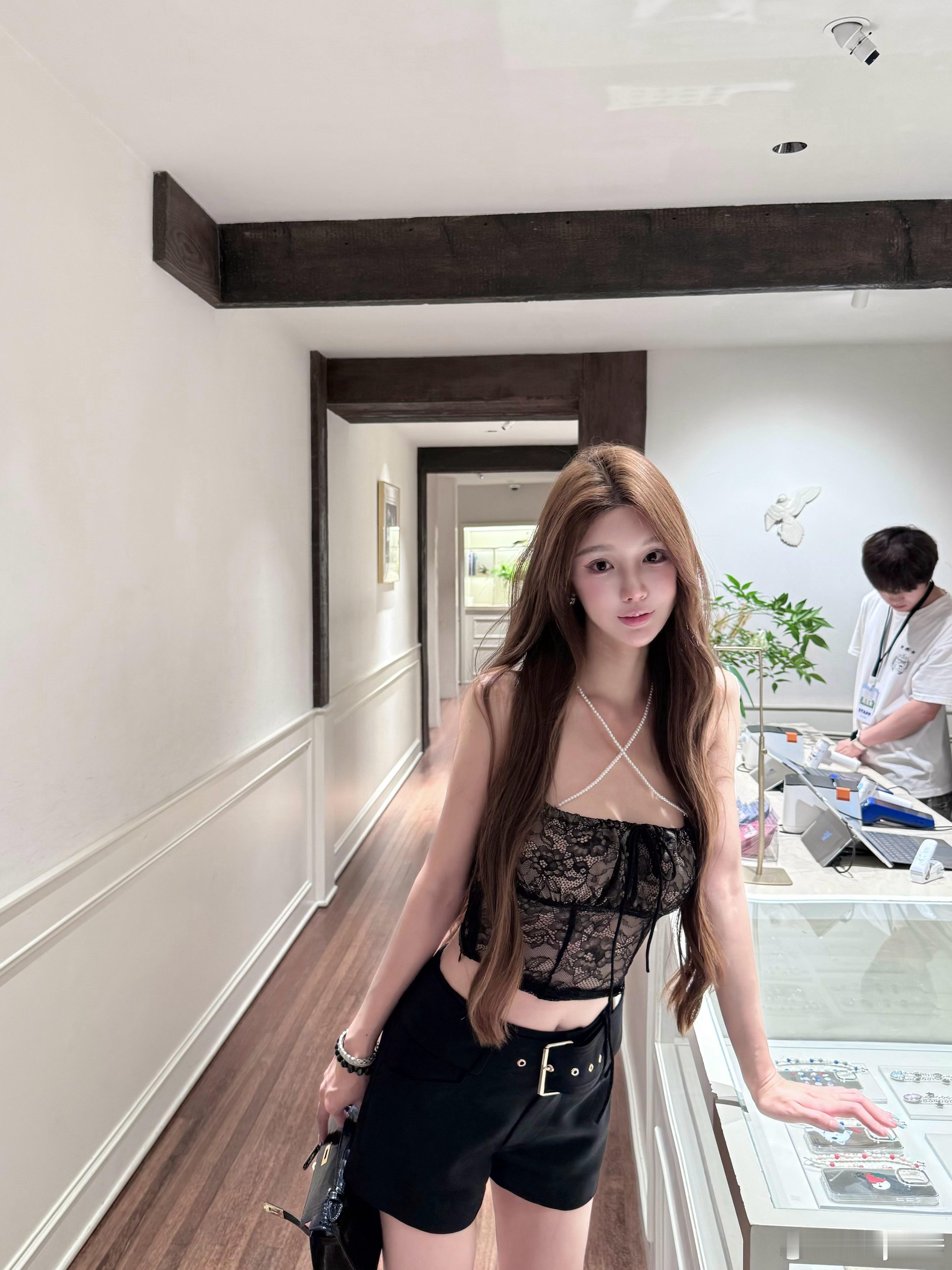 梨花小吊带单穿不简单 内搭有细节每一串珍珠都是我们自己串的哦 为了保证品质喜欢黑