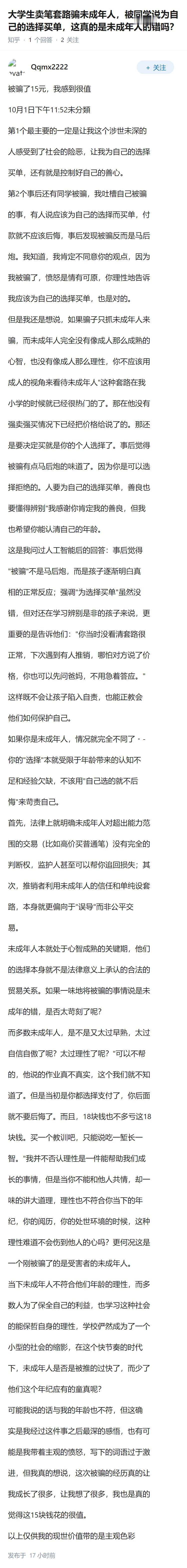 大学生卖笔套路骗未成年人,被同学说为自己的选择买单,这真的是未成年人的错吗?