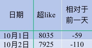 昨天的超喜欢跟发帖人数还有今天的超喜欢底数就在这里了