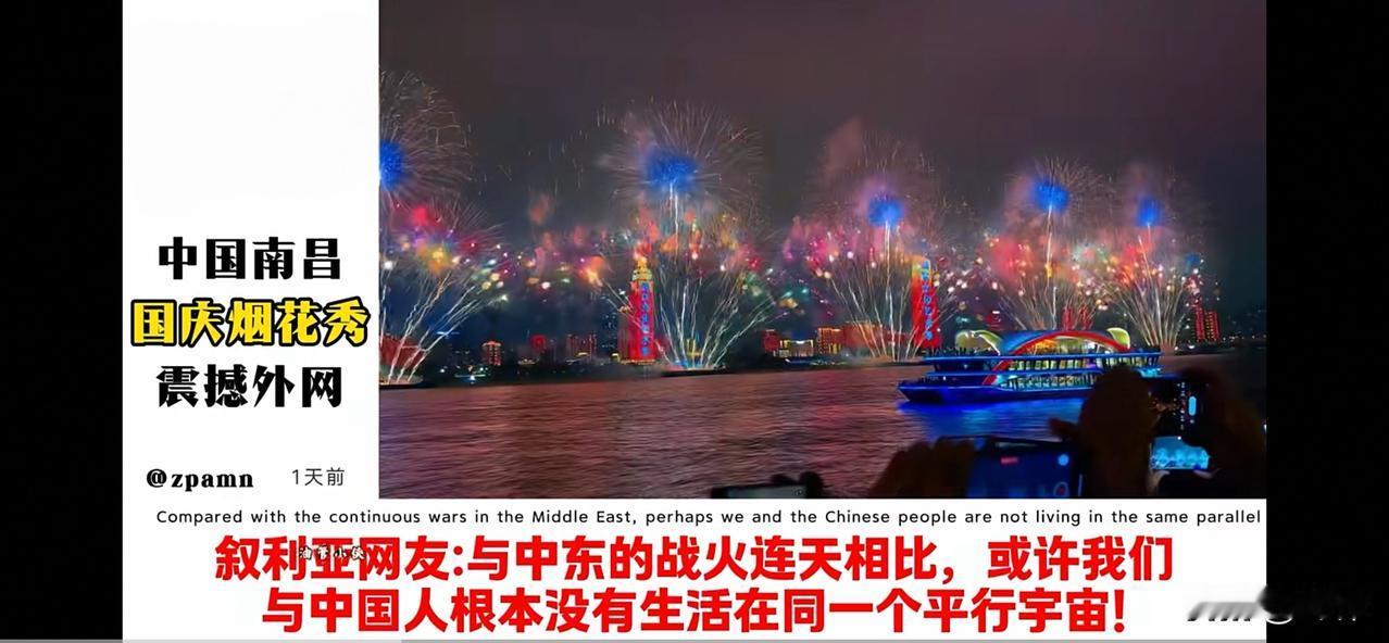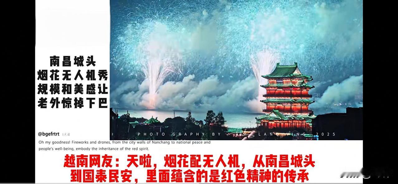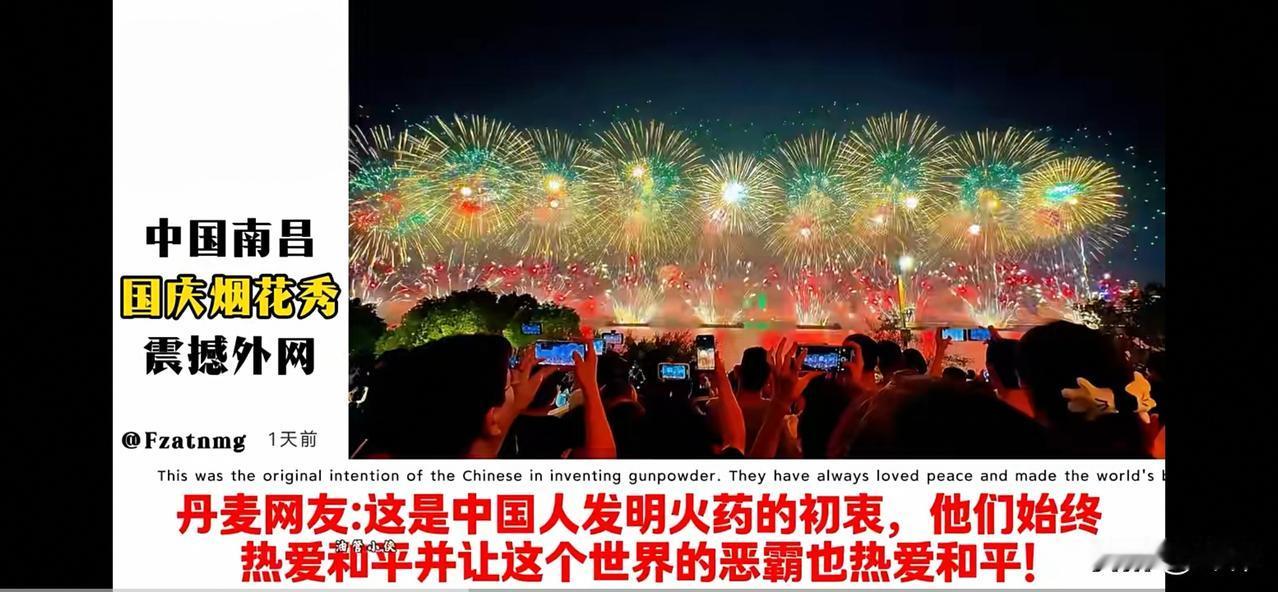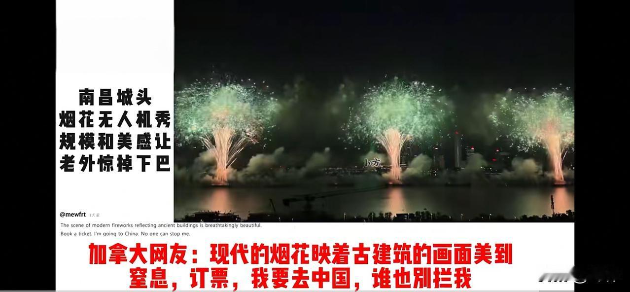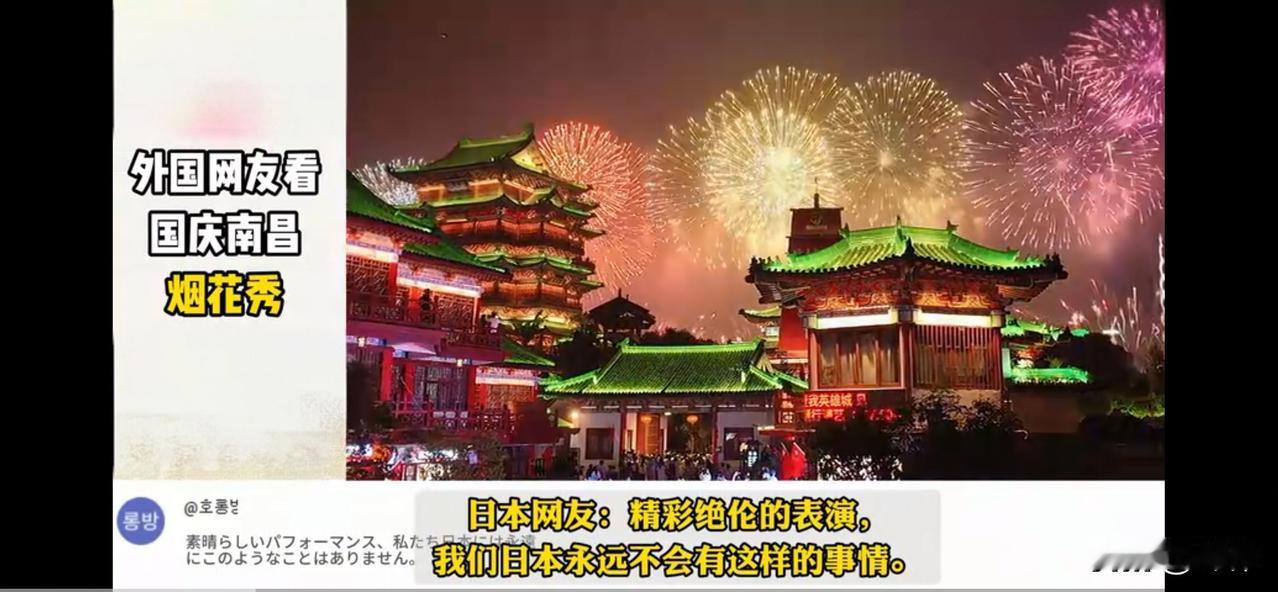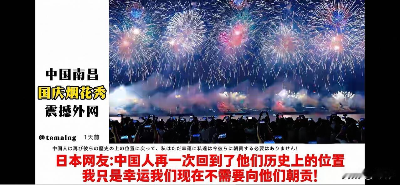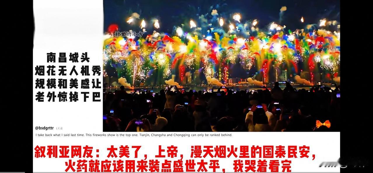 南昌烟花秀美哭全球网友:盛世中国具象化了(一) 德国网友:中华盛世和南昌烟花秀征服了全球网友,中国每天都将人类认知提升到了新高度。 日本网友:中国人再一次回到了他们历史上的位置,我只是庆幸我们现在不需要向他们朝贡! 南非网友:中华盛世和南昌烟花秀引发全球网友热爱狂潮,世界领袖,全球仰望。 韩国网友:对比梦幻般的南昌,我感到了首尔的落后,每一座中国城市都让我怦然心动和心跳加速。 印度网友:我是一名旅游博主,中国美好得让我想哭,你无法想象一个国家可以强大到如此程度。 美国网友:中华盛世让美国网友集体泪崩,中国的美好和先进远不是美国可以比较。 意大利网友:这是我第1次来到南昌,我简直不敢相信自己的眼睛,这座中国排名38~42位的二线城市,竟然比罗马和米兰先进多了和壮美多了。 叙利亚网友:与中东的战火连天相比,或许我们与中国人根本没生活在同一个平行宇宙! 俄罗斯网友:我和闺蜜都已嫁入中国并一起观看了南昌烟花秀,92万现场观众的热情足以点燃整个宇宙,璀璨奇幻的烟花足以点亮人类的未来之路。 委内瑞拉网友:中国的国庆节,人类未来的开幕式,南昌无比绚丽的烟花表演就是人类开幕式的最好注脚。 叙利亚网友:太美了,漫天烟火里的国泰民安,火药就应该用来装点盛世太平,我哭着看完。 丹麦网友:这是中国人发明火药的初衷,他们始终热爱和平并让这个世界的恶霸也热爱和平! 土耳其网友:1300米的江面全是烟花,5000架无人机同步表演,他们真的是技术与财富并存啊。 新加坡网友:南昌烟花秀美翻全球网友,盛世中华具象化了!所有中国人都感到骄傲。 越南网友:天呐,烟花配无人机,从南昌城头到国泰民安,里面蕴含的是红色精神的传承。 阿联酋网友:为致敬世界领袖的76年征程,哈利法塔在10月1日再次点亮中国红!中国万岁! 阿尔及利亚网友:如果奇迹有颜色,那一定是中国红!4.5亿阿拉伯人民永远追随! 塞尔维亚网友:红旗17和红旗22守护塞尔维亚的和平。为表达对中国的热爱,塞尔维亚人民将五星红旗挂在窗口和印在胸口。 埃及网友:红旗9B守护西奈半岛的天空和边境,有了红旗9B我们就有了捍卫国家主权和维护地区和平的底气和信心。 孟加拉国网友:我在帕德玛大桥上挥舞五星红旗,感谢中国帮助和中国技术,这座人类工程史上的奇迹助力孟加拉国经济腾飞! 秘鲁网友:我在钱凯港亲吻五星红旗,感谢中国援建和中国技术,作为南美首个智慧港口和绿色港口,这座拉美最先进的自动化港口让秘鲁的发展昂首阔步! 泰国网友:我为我的华人血统感到无比骄傲。中国和东盟互为最大贸易伙伴,中国的平等尊重和合作共赢为东盟带来经济发展和贸易繁荣。 白俄罗斯网友:作为上合组织正式成员国和国际调解院创始成员国,白俄罗斯与世界领袖同呼吸共命运。 尼日利亚网友:14亿非洲人民为人类第一强国的成就感到骄傲和自豪!从93阅兵式到十一国庆节,我感觉自己很难弯腰,因为我的腰杆很硬! 哈萨克斯坦网友:举办上合峰会的天津,美得让我想哭。举办第五届世界生物圈保护区大会的杭州,美得让我想哭… 哈萨克斯坦网友:现在,举办国庆节烟花秀的南昌,美得让我想哭…中华盛世的繁荣富强和先进发达是人类文明的新高度! 加拿大网友:现代的烟花映衬着古建筑的画面美到窒息,订票,我要去中国,谁也别拦我。 日本网友:精彩绝伦的表演,我们日本永远不会有这样的事情,或者说我们日本永远不配拥有这种美好,因为我们日本永远达不到这种境界。 日本网友:看看在漫天烟花映衬下的人类文化瑰宝滕王阁吧,这种建筑艺术、文化造诣和胸怀意境是日本永远学不会和达不到的…