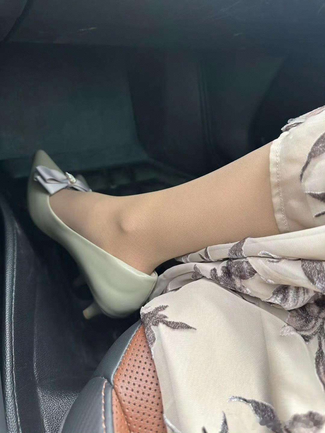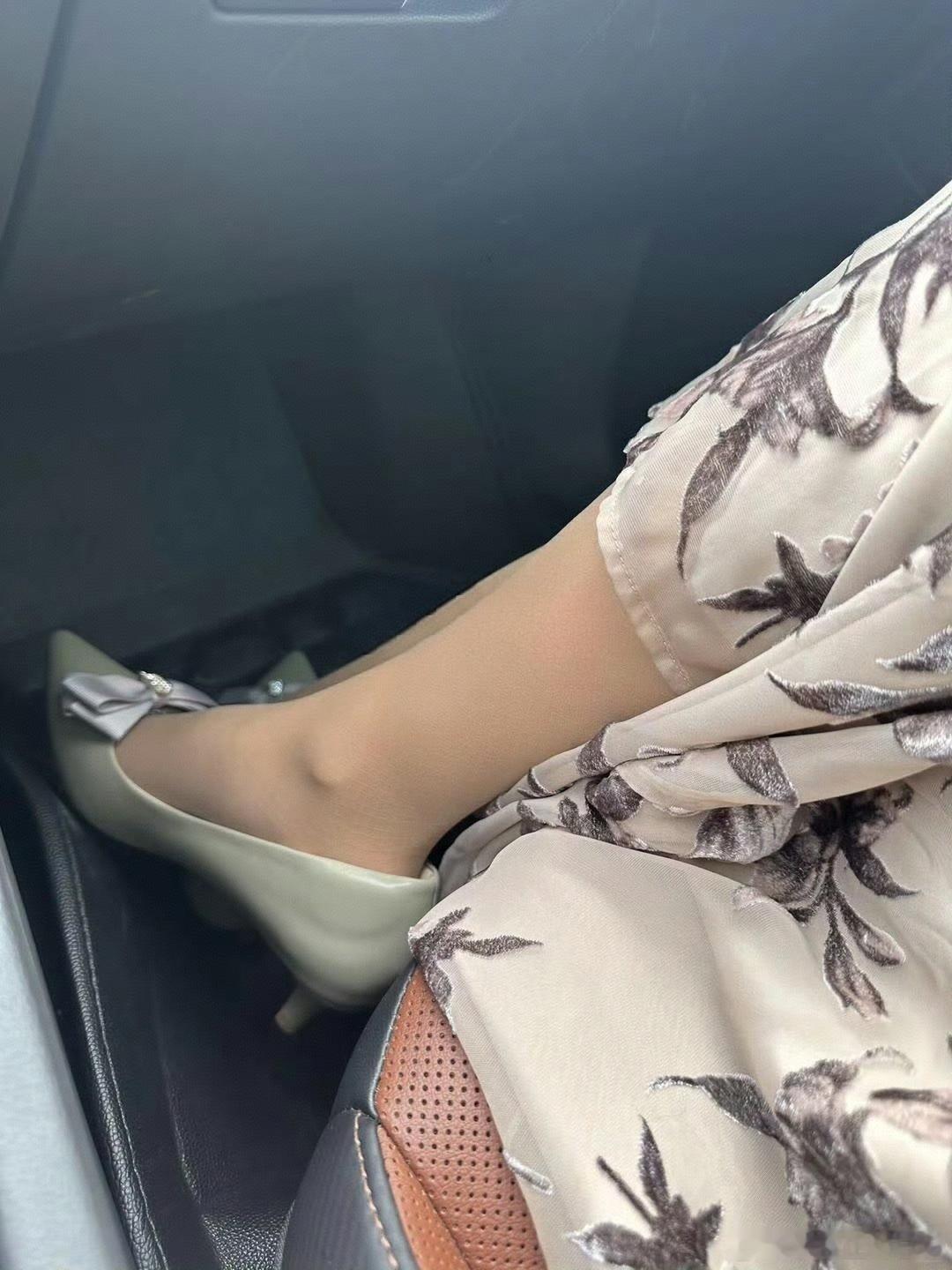 时尚的高跟鞋[超话]浅绿色高跟鞋,戴蝴蝶结,秋季出门必备精彩人像[超话]