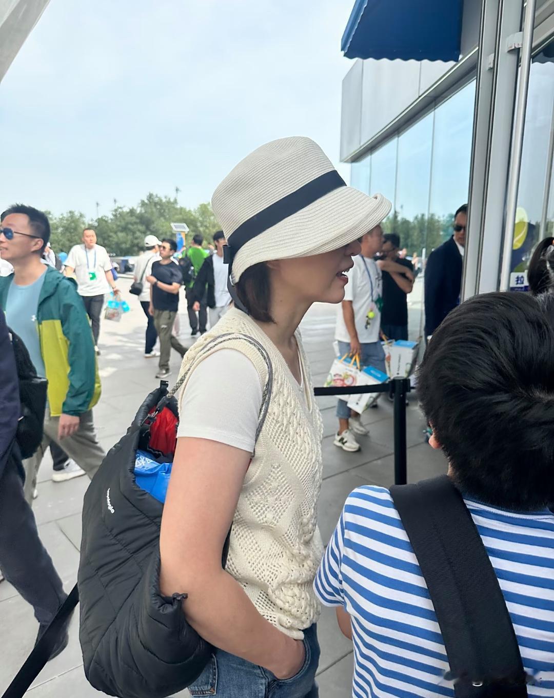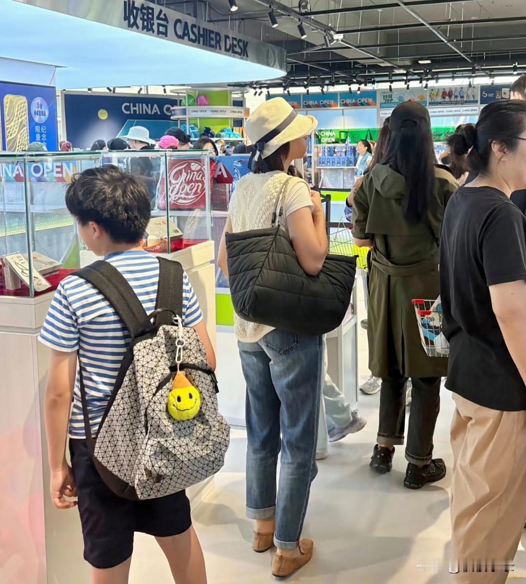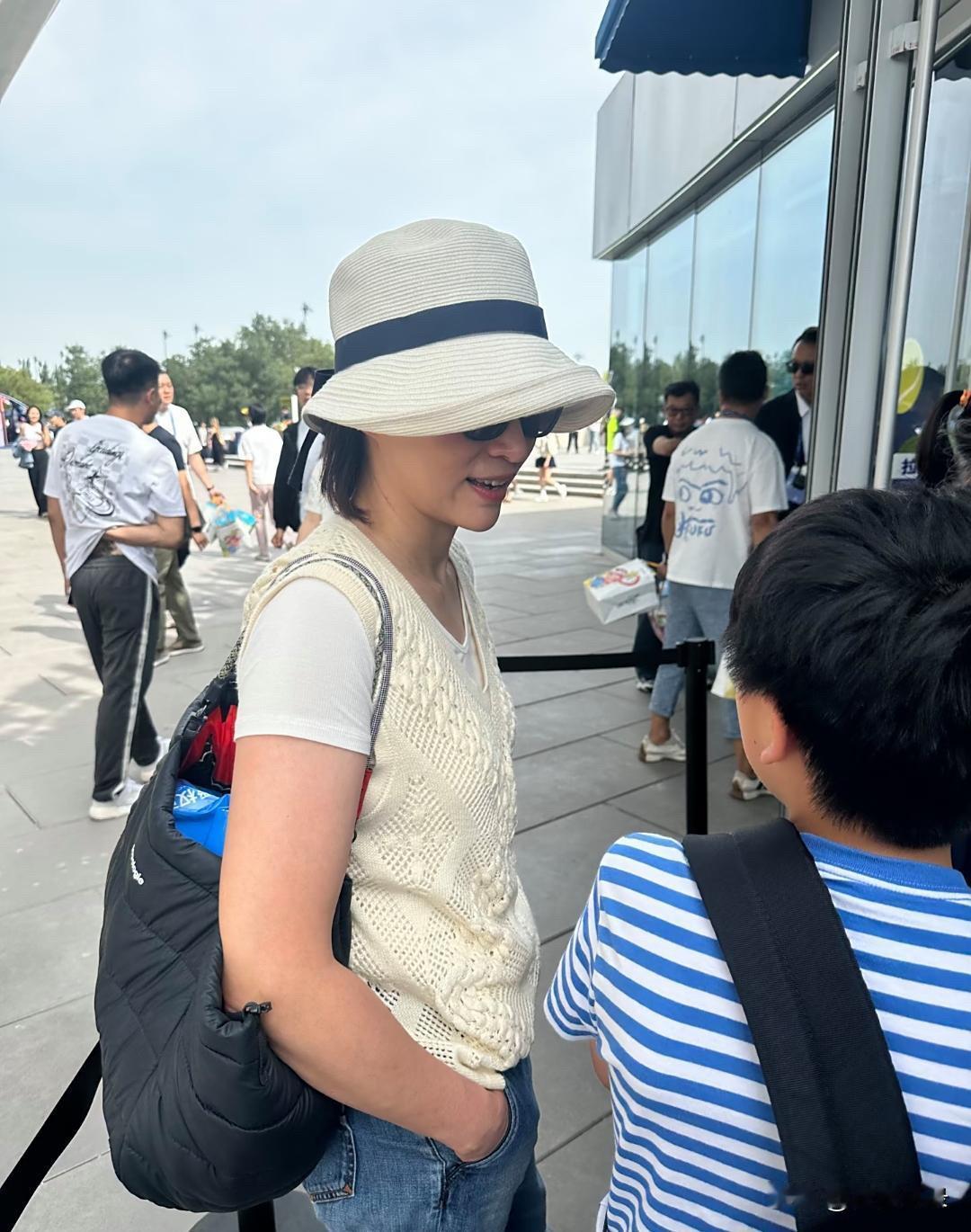 董卿和11岁儿子在北京看网球比赛,母子俩打扮时尚,一边排队一边聊天,看起来很亲密。董卿看儿子的眼神里都是宠溺!