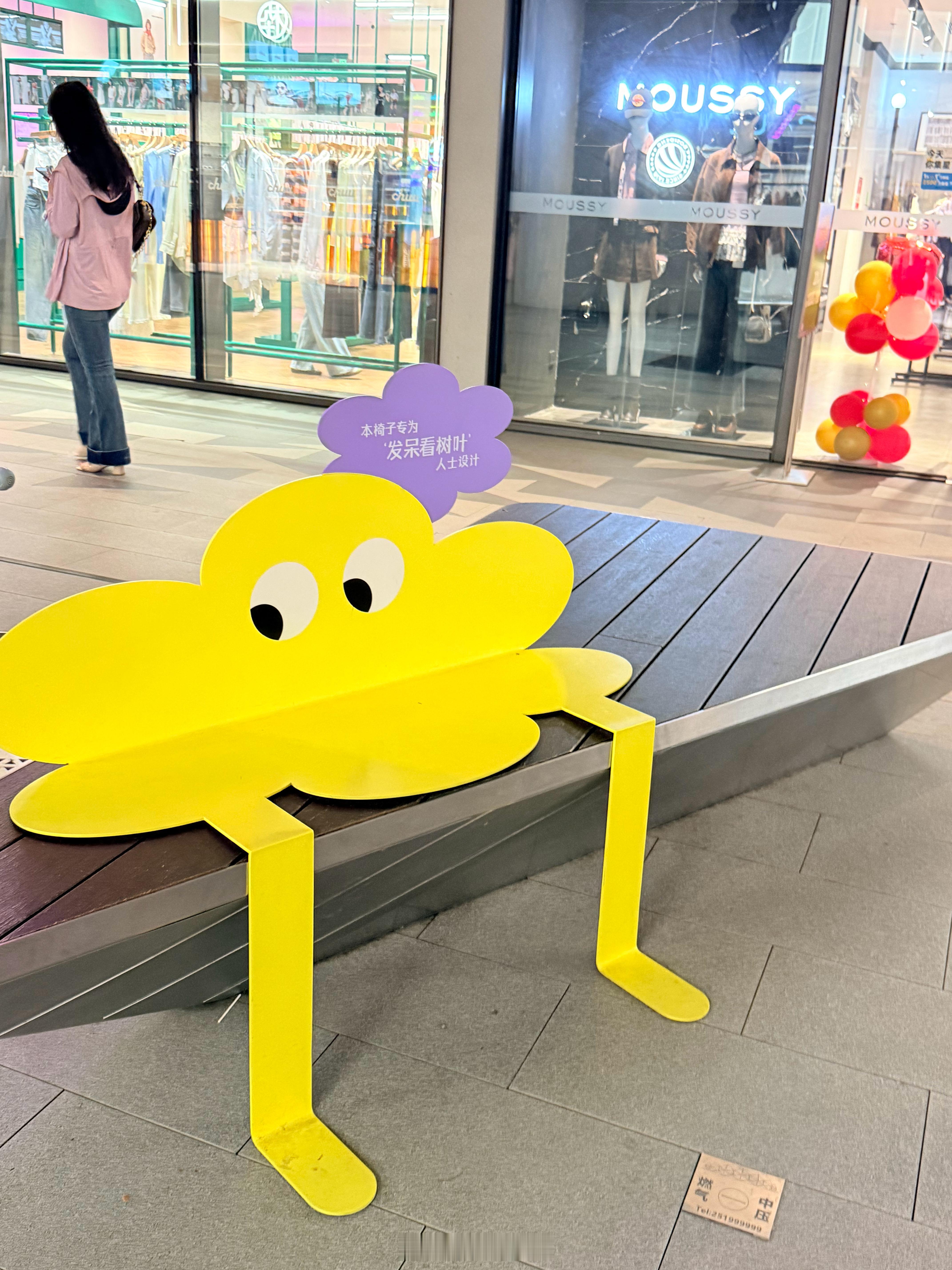 连户外的椅子都是专为发呆看树叶人士设计,以前大多看到的都是写礼让老弱病残孕,坐上心里都会有不安[无聊]