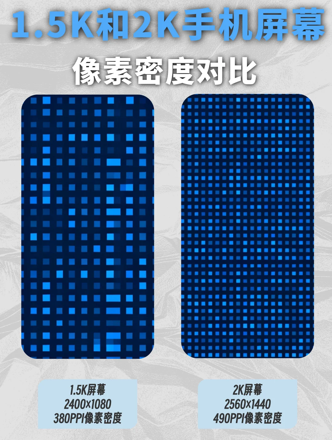 在手机屏幕领域,1.5K分辨率(约2400×1260)和2K分辨率(3200×1440)之间的竞争尤为激烈。厂商们常以“兼顾功耗与清晰度”为1.5K屏幕宣传,但真实情况是: