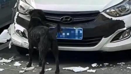 10月1日下午5点,湖南吉首的马女士尚在梦乡之中,突然接到电话,称她的车被狗啃了。起初,她以为这是诈骗电话,但终究还是放心不下,前往车位查看。到了那里一看,车的前方惨状令人不忍直视,旁边还蹲着一只黑狗。 视频里,她那辆白色私家车前方的车衣被撕扯得破烂不堪,地上一片狼藉,车上满是口水和牙印。看到这一幕,她竟站在原地笑了十多分钟。等她回过神来,那只狗早已没了踪影。 她随即报了警,然而监控画面模糊不清,暂时未能找到狗主人。这只狗还戴着项圈,显然是有主人的。要是一直找不到狗主人,都不知道保险公司会不会理赔,实在是倒霉到家了。 狗啃萝卜 吉首狗