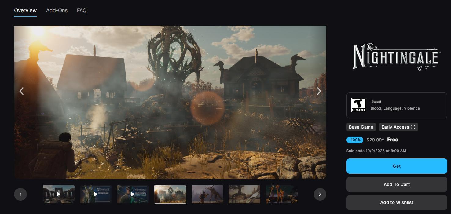 由 Inflexion Games 开发的开放世界生存游戏《夜莺传说》现正于 Epic Games Store 免费领取,活动截止至 10 月 9 日 23 点,支持中文。