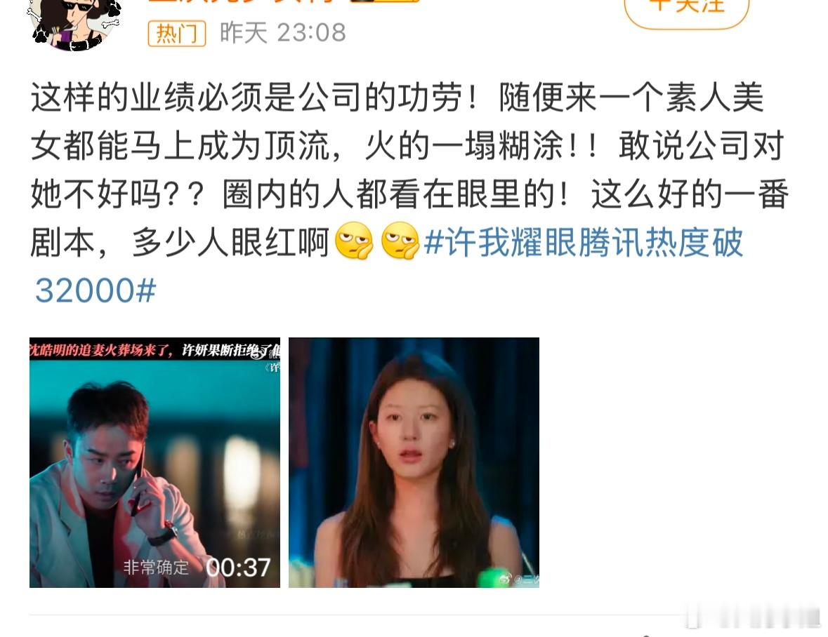 woc!《许我耀眼》开播第7天腾讯视频站内热度值破32000,刷新腾讯视频都市剧