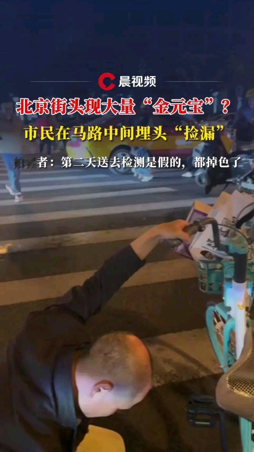 北京街头现大量“金元宝”?市民在马路中间埋头“捡漏”,拍摄者:第二天送去检测被告知都是假的这一奇特场景可把当时路过的市民们给吸引坏了。只见那一个个黄澄澄的“金元宝”就那么散落在马路中央,在阳光的映照下仿佛闪着诱人的光。不少人心里那是一阵激动,想着这运气来了挡都挡不住,说不定一下子就发笔小财了,于是纷纷停下脚步,也不管马路上车来车往的危险,就一头扎进马路中间开始“捡漏”。有人兴奋得眼睛都放光了,一边捡一边还暗自盘算着这要是真金的,能换多少钱,够自己买多少心仪已久的东西;还有人小心翼翼地把捡到的“金元宝”捧在手里,像捧着稀世珍宝一样,脸上洋溢着抑制不住的喜悦。 拍摄者当时也被这热闹的场面惊到了,顺手就把这一幕拍了下来。大家捡到“金元宝”后,那是满心欢喜,都以为自己交上了好运。可谁能想到呢,第二天去检测,结果犹如一盆冷水,直接把大家的美梦给浇灭了——原来这些所谓的“金元宝”全都是假的。 这事儿一传开,大家纷纷猜测这到底是谁搞的恶作剧。有人怀疑是不是商家为了吸引眼球搞的营销手段,故意弄些假“金元宝”来制造话题;也有人觉得说不定是哪个调皮捣蛋的家伙闲得无聊,就想看看大家出丑的样子。不管真相如何,这次经历也给大家提了个醒,天上不会平白无故掉馅饼,遇到这种看似“捡漏”的好事,可千万别被一时的贪心冲昏了头脑,不然最后吃亏的还是自己呀。