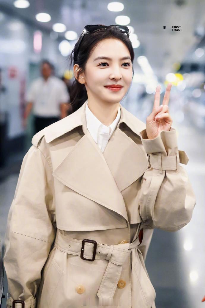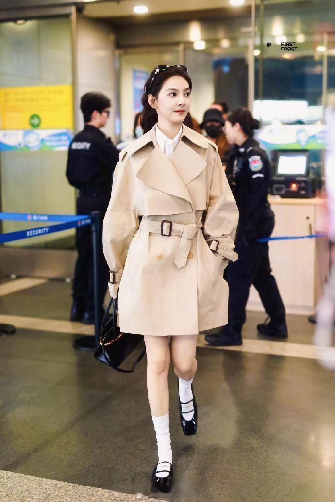 小麦色风衣与黑色皮革手袋的组合太经典,章若楠这身出发造型把简约单品穿出了高级感,短款设计更添灵动,期待巴黎秀场的亮相!范丞丞章若楠纪梵希大秀出发 ​​​