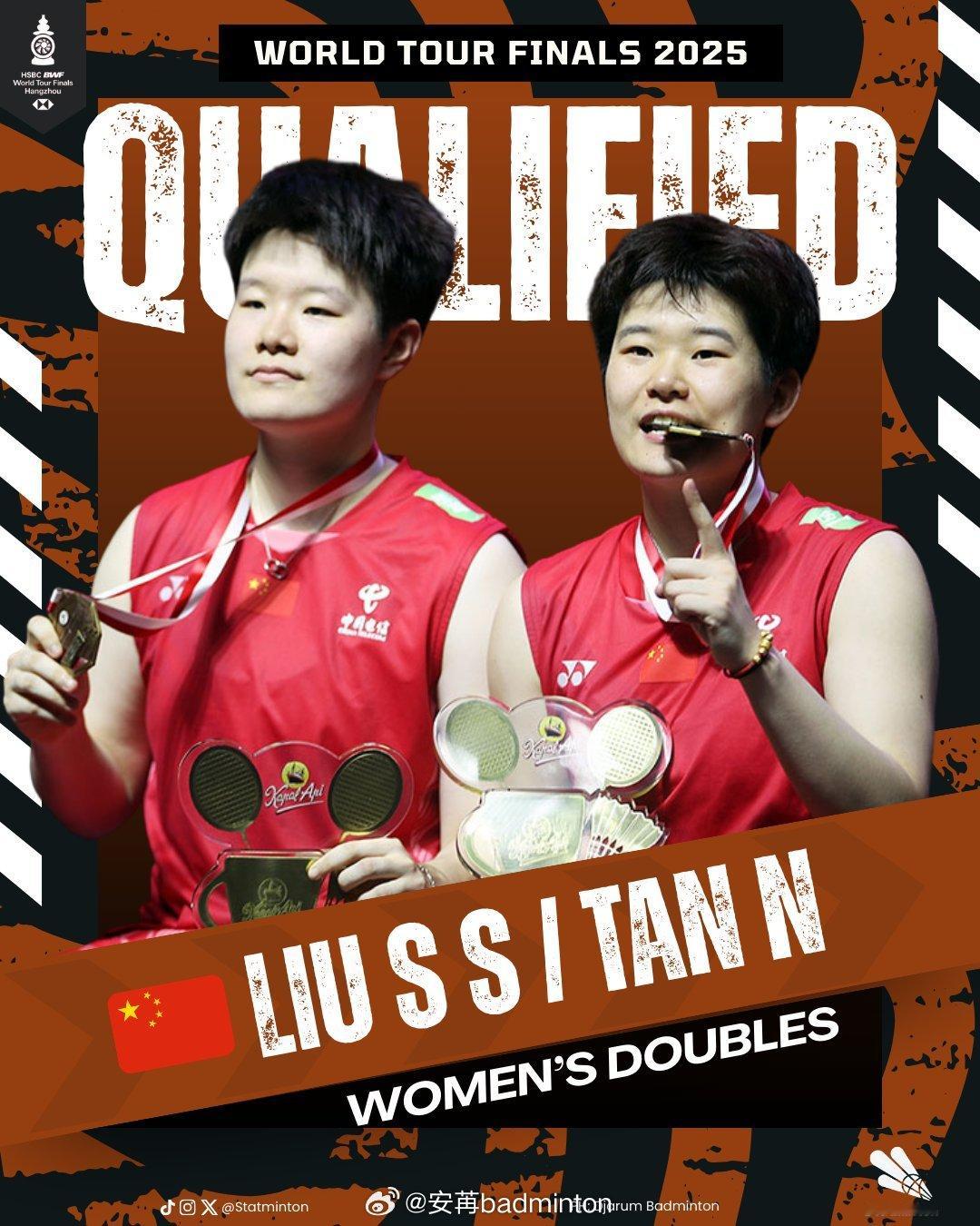综合韩国和日本两站大师赛的名单之后,🇨🇳国羽女双凡贤组合正式确定提前锁定总决赛席位,加上此前通过世锦赛冠军直通总决赛的圣坛组合,国羽女双满额完成总决赛参赛席位![赢牛奶][赢牛奶][赢牛奶]羽毛球2025年世界羽联年终总决赛