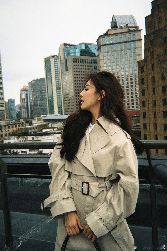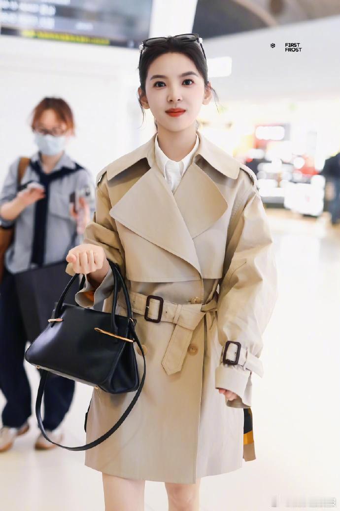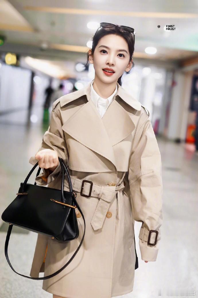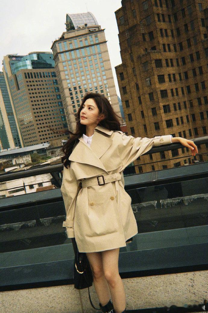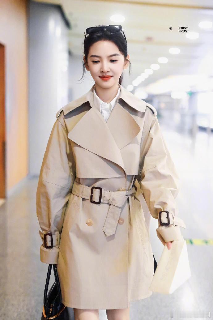 短款风衣果然是显比例利器,章若楠这身小麦色造型把"上短下长"的穿搭法则诠释得