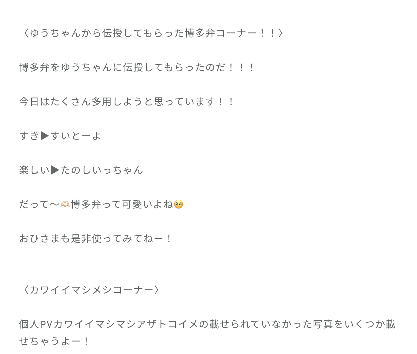 片山紗希「福岡公演DAY1ありがとうございました🩵✨ゆうたんとりなさんの地元に訪れられてハッピーです😆❕ご飯も沢山食べたのだ!!!もつ鍋に、鉄火丼、どちらも美味しすぎて大号泣😭」