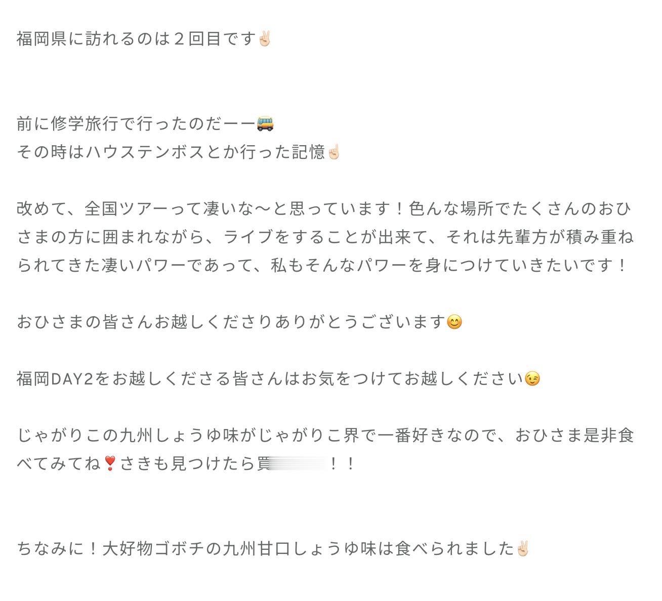 片山紗希「福岡公演DAY1ありがとうございました🩵✨ゆうたんとりなさんの地元に