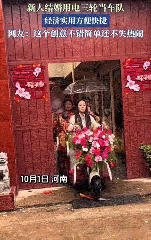 这是格局打开了!河南,小伙子结婚组了一队三轮车接亲,因新娘家和小伙子家距离很近,