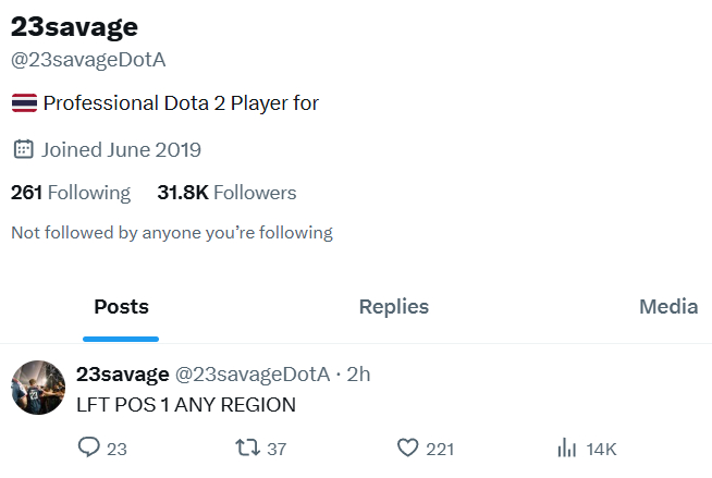 23发推找队表示任何赛区都可以,通过这个信息不难看出Talon前几天刚刚官宣的阵