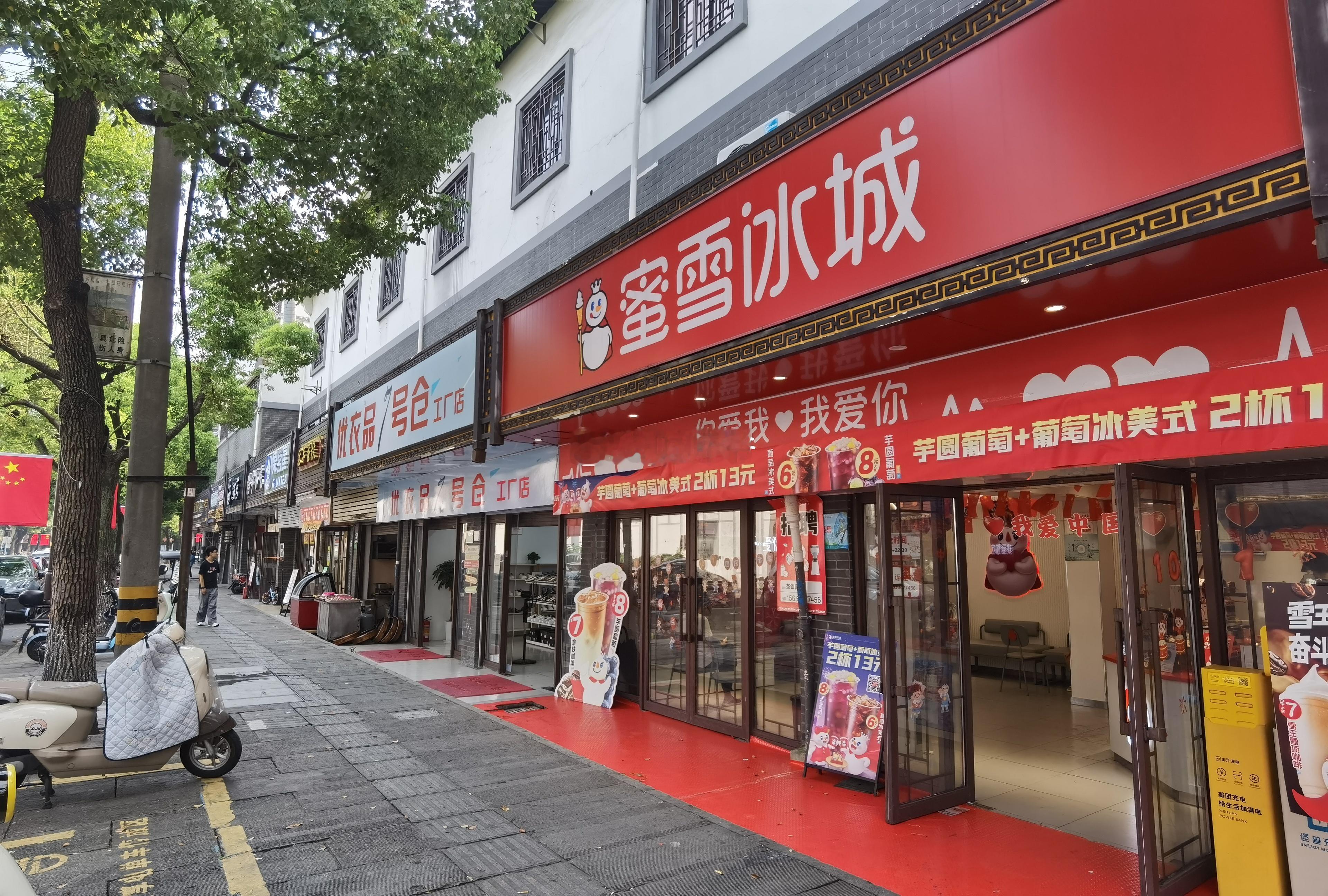 偌大的蜜雪冰城,虽然在景区门口,但并没有很多人,随到随喝。