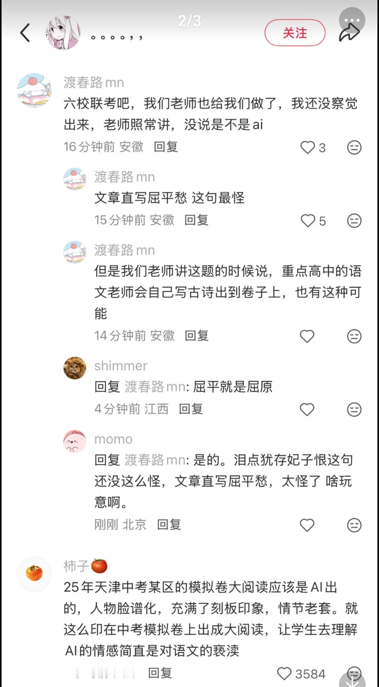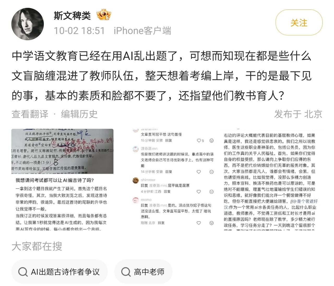 看到网友吐槽现在高中语文试卷都用AI出题了。 怎么说呢,在教育行业正常用AI没问