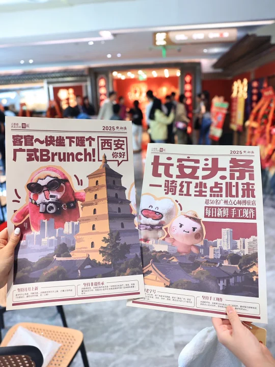 点都德终于来西安了🥳入驻赛格八楼 超800平的面积 一秒让你进入广东时间 这次,西安人在家门就能吃到这家 创立于1933年的老字号广式茶楼了🍵 超50+广州点心师齐聚 全程现点现蒸 复制地道粤味 连热茶也是小杯慢品🥢 活生生的在西安体验广式茶歇慢生活 金莎海虾红米肠、招牌虾饺皇、蜜汁叉烧包必点 炸鲜奶、栾樨粒粒红豆糕、香芒夹心椰汁糕 百合酱蒸凤爪、大大大油条 每一口都层次丰富 唇齿留香 好吃到爆🤤 陈皮莲子红豆沙和杨枝甘露都甜度适中超绵密 门口还有广州「红米肠」×西安「肉夹馍」同框 别忘了去打卡哦!📷
