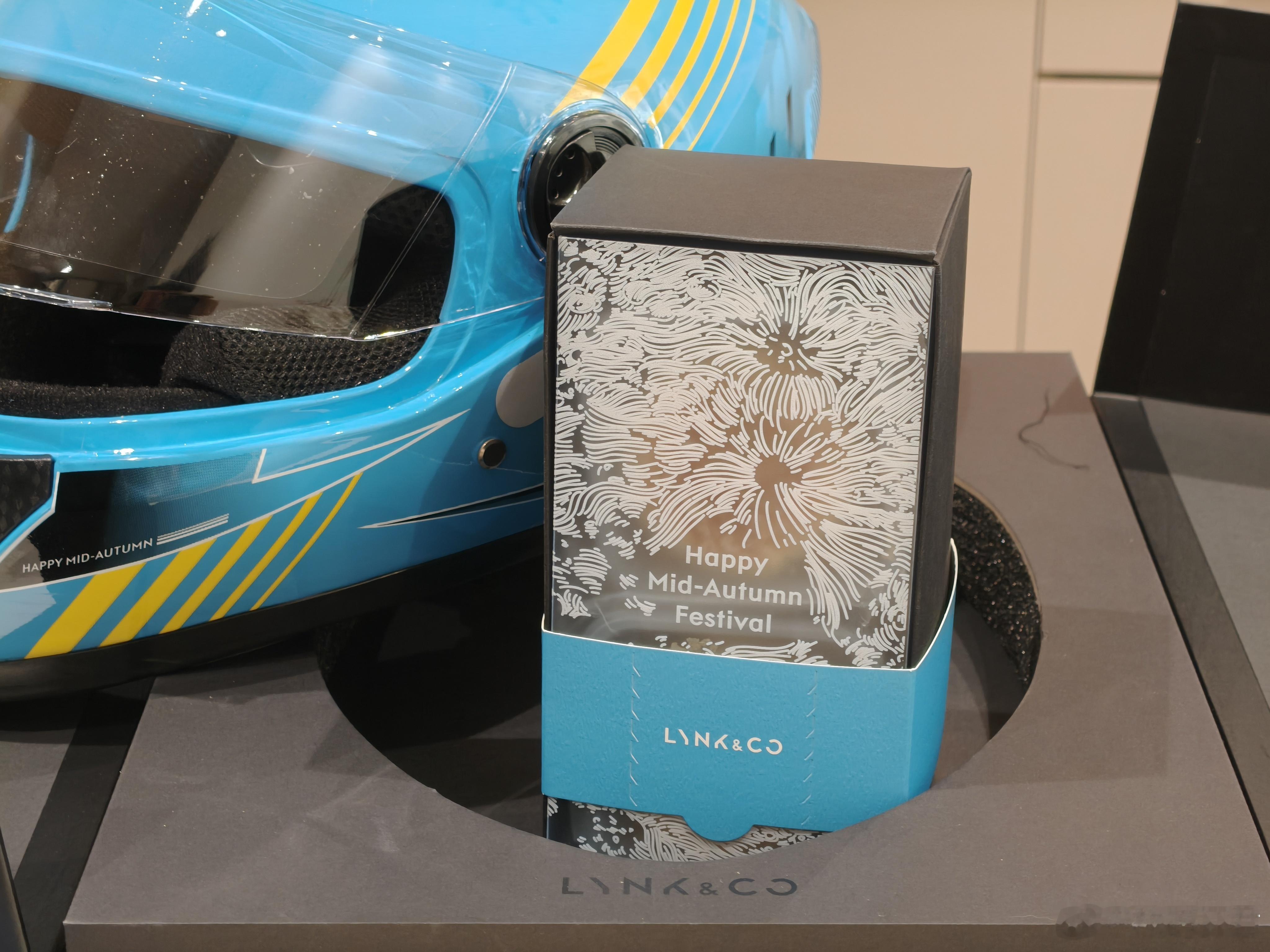 领克的中秋礼盒,竟然是个赛车头盔?Cyan蓝涂装,可太帅了![捂嘴哭]