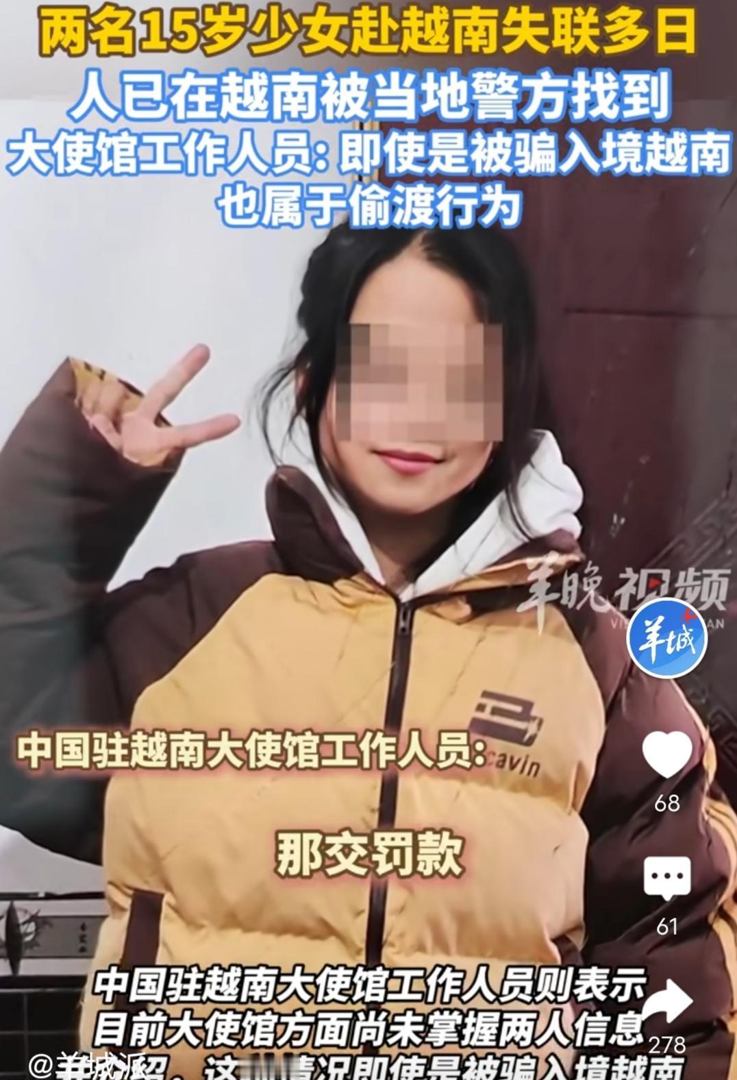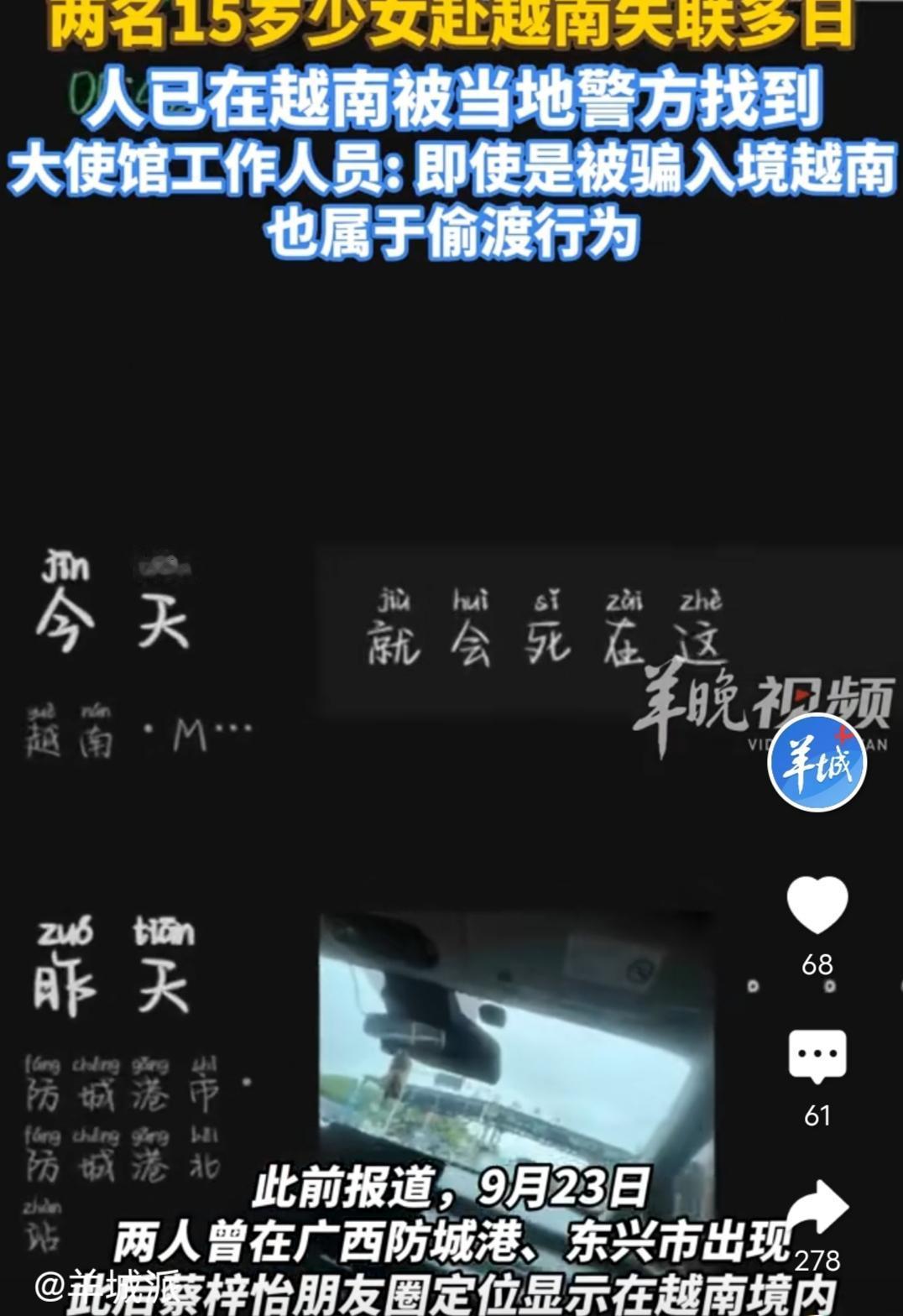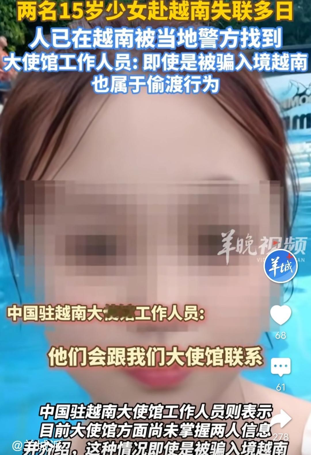 两名15岁少女赴越南失联多日,已被当地警方找到。 来自相关媒体的报道,貌似最近这