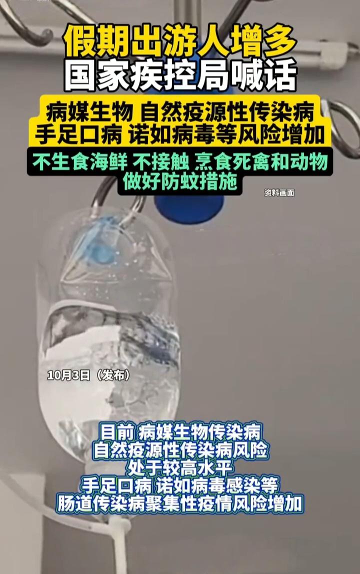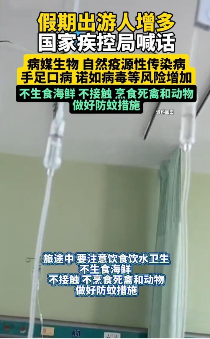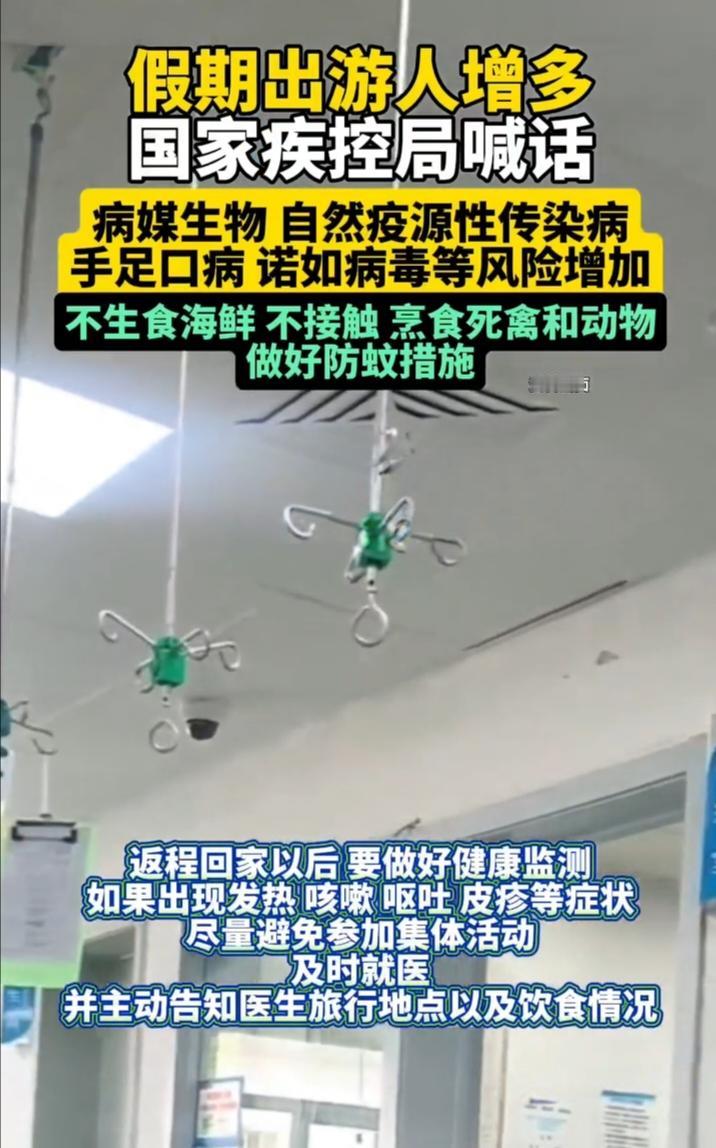 《假期出游=生病?疾控专家:这3种行为最危险,现在知道还不晚 假期玩得嗨,健康别落下!疾控君温馨提示:近期出游请注意,病媒生物和肠道传染病风险上升,手足口病、诺如病毒正“虎视眈眈”。记得不生食海鲜,远离死禽动物,防蚊措施做起来,快乐度假不“中招”!诺如病毒防治 诺如病毒护理 传染病预防指南 手足口病 假期出游