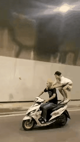 年轻人的疯狂 马路上,两个年轻人疯狂地骑着摩托车,一个左倒,一个右倒,做着各种姿势,突然,后边那个年轻人从车上摔了下来。 视频看到这里,感到他们没有一点安全意识,骑摩托车时,故意炫耀车技,一会站在摩托车上,一会儿蹲在摩托车上,后边的那个年轻人还拉着黄毛的衣服,使自己失去平衡,很快摔在了地上。 常言道,人不作不死,一作就死,这句话说的有道理。骑摩托车为啥要疯狂?寻找刺激,刺激找到了,身体也受伤了。 奉劝年轻人,父母把你们养大不容易,要珍惜生命,不要拿命去疯狂,一旦出了事故,怎么对得起父母,孩子是父母的希望,没有了孩子,父母会伤心一辈子。 网友评论: 尤其是摩托车后面的那位女士,骑过摩托车电动车的人都知道,坐在车后面的人是不能随便乱动的,更何况还在用力 地怂骑车人的肩膀。前面骑车的黄毛也是,好好的骑车不行吗?还在坐位上前后大副度挪动抖动着狂飙车技。两个人完全在找死。 我记得那次最惨烈的,身子在摩托车旁边,头在路边树坑里……另一个满脸都是血,也没救过来…… 敬畏生命,生命只有一次,没了生命,一切归零。