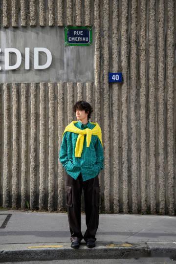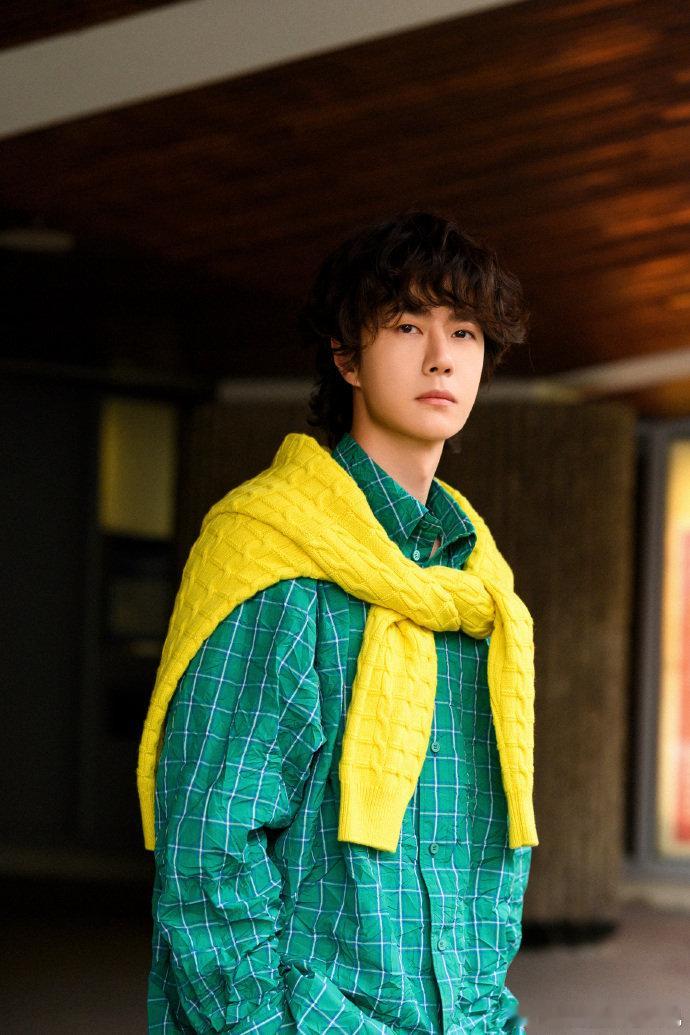 王一博绿格纹衬衫黄披肩看秀look 王一博感知纯粹色彩下的鲜活叙事