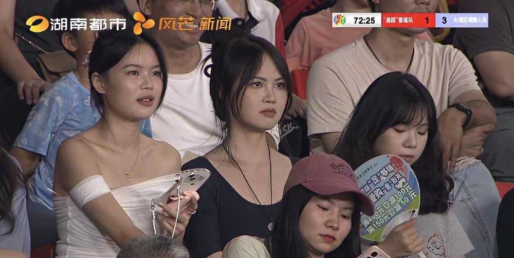 下次去娄底主场看湘超战岳阳,一定要多带上几位美女,特别是修长大腿还热情奔放的那种,让她们穿上“硬刚到底”的球迷服,吹着喇叭还一阵阵尖叫,那样剌激的话,估计场上驰骋的球员会更来劲,如今连现场直播的摄像师的眼睛,都专门盯着看台上的美女,确实比业余足球湘超更专业的,是赏心悦目,毕竟运动与健美,一个入心,一个入眼,难怪有人说看湘超,至少保证你入场后那两个小时的比赛是无比快乐的,邵阳队主场欢迎大湾区老湘唱的是《海阔天空》,娄底队主场欢迎大湾区老湘唱的是《故乡的云》,看来足球还得看湘超!