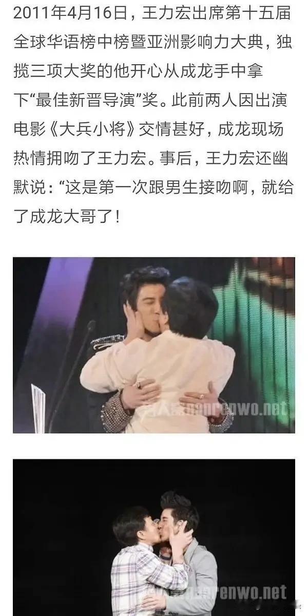这像什么样子,两个大老爷们儿在台上就亲上了,真是辣眼睛。 这两个男人也够可以的,王力宏前几年因为离婚风波淡出大舞台,仅隔两年就正式复出,现在又回归到大众视野。 复出后的王力宏很高调,今年更是频频亮相,在10月2日王力宏的个人演唱会上,成龙作为神秘嘉宾亮相,一上场两个人就亲上了。 这两个大男人也不是第一次在台上亲来亲去的,他们俩到挺享受,观众直呼受不了。 图自网络侵必删