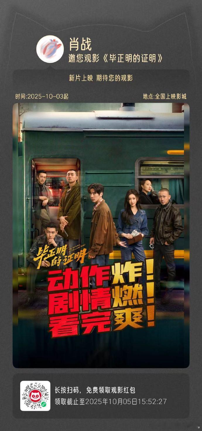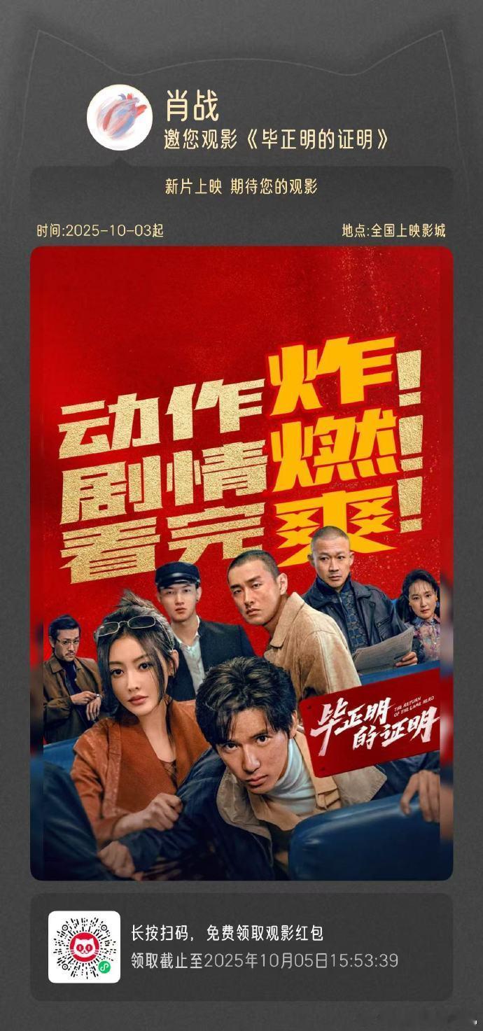肖战说国庆来看电影毕正明的证明,是我们肖战包场宣传电影毕正明的证明,期待住和战战一起支持电影啦~