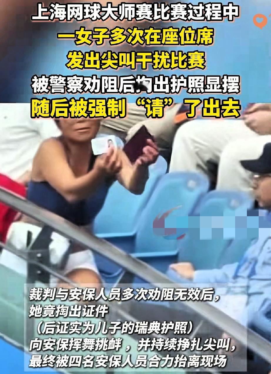 护照姐被抬出球场那刻全场鼓掌! 这哪是酒后失态,分明是“特权幻觉”碎了一地! 46岁的谢某喝了酒就在网球赛场上撒泼,尖叫着打断比赛,被劝还挥舞护照挑衅,真当这小本本是“免罚金牌”? 结果警方通报一锤定音,她就是中国籍,最终被行政拘留。 最让人揪心的是她那孩子,全程攥着衣角捂耳朵,看着妈妈撒泼被抬走当场哭了。 早有爆料这孩子之前就因没规矩被幼儿园劝退,现在又被亲妈拉进这场闹剧,心里得留多大阴影? 她丈夫的工作也被波及,真是一人任性全家买单。 别拿“喝醉了”当借口,骨子里是没把公共规则放眼里。 你觉得该怎么让这种“特权幻觉”彻底清醒?来评论区聊聊!