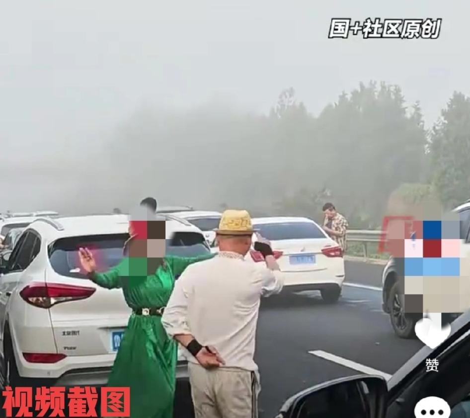 山东威海国庆高速堵车又现“高速舞者”。 这是众人被堵到早上六点多钟,有人看到有