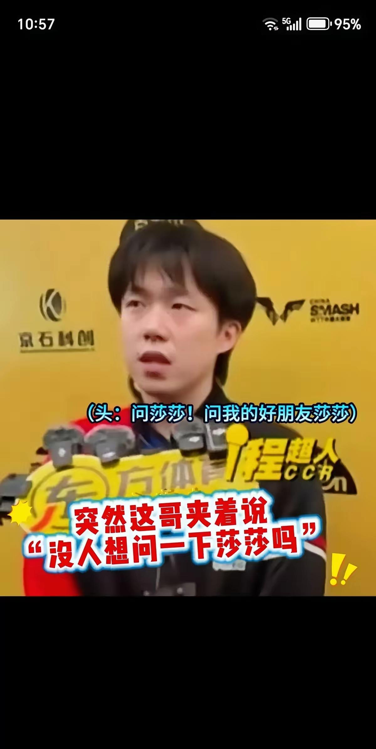 这次莎头混双比赛结束 接受采访的场景太逗了 莎莎低着头 不出声 想躲过这次采访 没想到,头哥这么大胆 “总问一个人,你们不问一下莎莎” 莎莎大大的葡萄眼睛满是不相信 想让我继续夸你[大笑] 不过这表情太可爱了 有网友说,头头又欠欠的找骂啦 玩笑归玩笑,莎头你们两个太棒了,继续加油! 愿你们越来越好,一路长虹 #莎头混双# #莎头# #国乒莎头# #国乒运动员莎头#