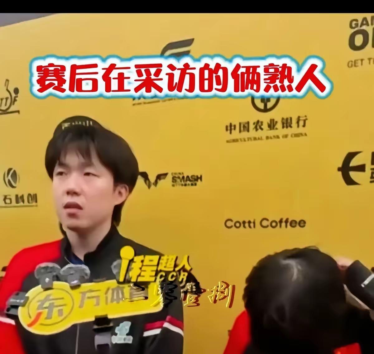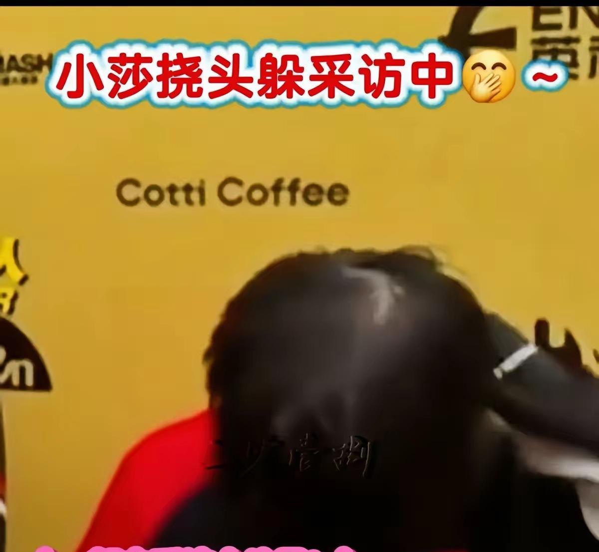 这次莎头混双比赛结束 接受采访的场景太逗了 莎莎低着头 不出声 想躲过这次采访
