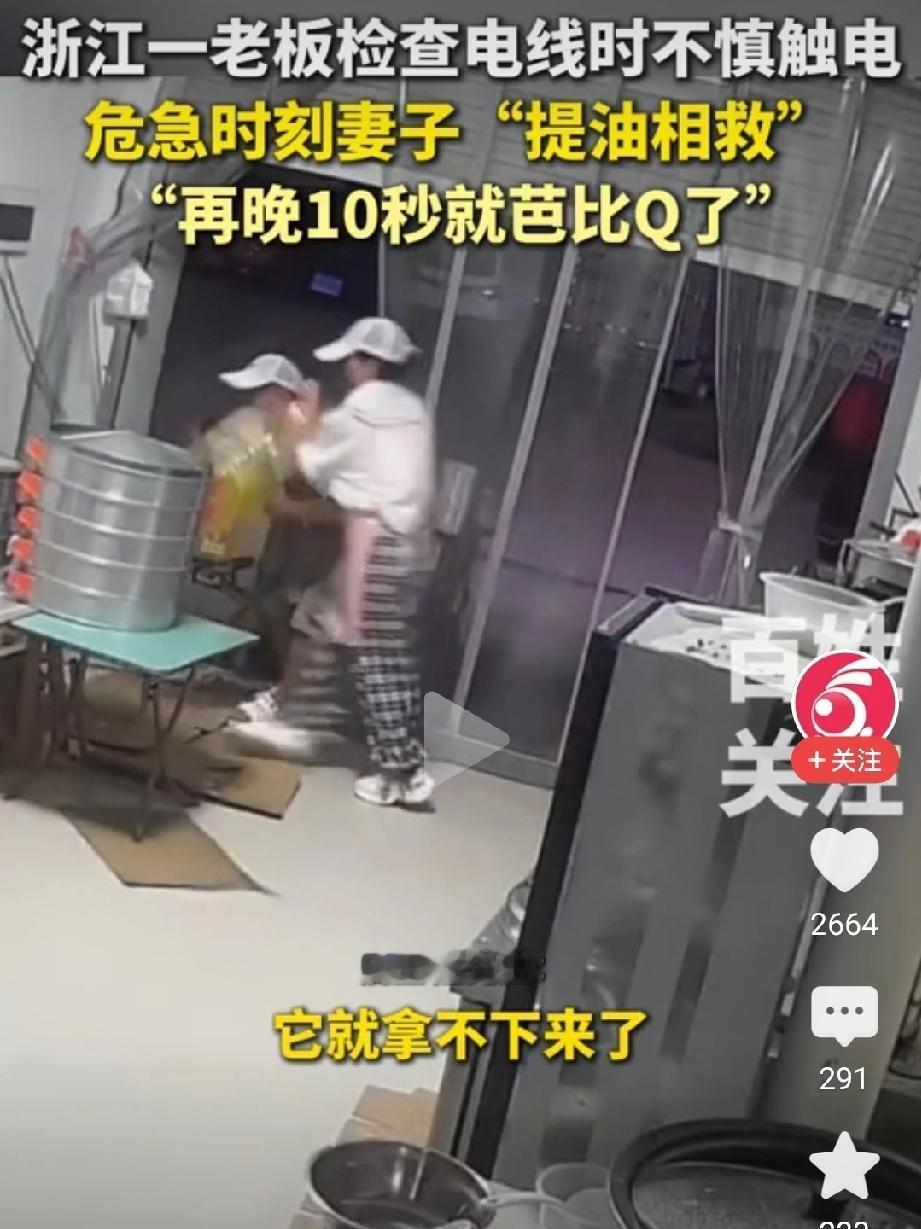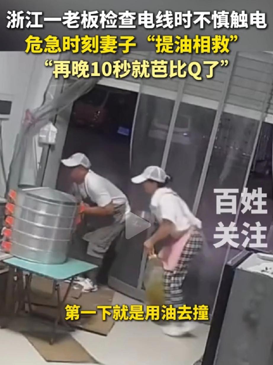 20斤油桶砸向丈夫!这惊魂一幕,是妻子最硬核的告白! “没有她就没有我了!”——这句朴实的话背后,是一场与死神赛跑的生死救援。10月2日,浙江金华,一名男子检查电线时不慎触电,身体被电流死死吸住,瞬间无法动弹,凄厉的叫声划破了平静的午后。 就在这命悬一线的关头,他瘦弱的妻子曹女士冲了过来。没有哭喊,没有慌乱,她做出了一个让所有人都捏了一把汗的决定——抄起身边20斤重的油桶,狠狠砸向那根致命的电线!第一下没撞掉,她没有丝毫迟疑,再次抡起油桶,用尽全身力气猛砸过去!巨大的惯性甚至让她自己都摔倒在地,但正是这奋不顾身的一击,成功将电线从丈夫手中砸落,在短短10秒内为丈夫砸出了一条生路! 事后,丈夫的左手拇指被电出一个大泡,右手食指烧伤严重。但比起伤痛,他更感激妻子的救命之恩。而曹女士在脱险后才感到巨大的后怕,她说当时根本来不及想,全凭本能。 这起事件也给我们所有人敲响了警钟:家中一定要安装漏电保护器!曹女士的沉着冷静和科学施救,堪称“教科书式”的典范。她用行动证明,爱,不只是甜言蜜语,更是危急关头,那个愿意为你拼命的人。 触电伤 触电如何救助