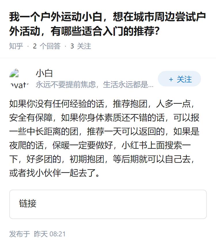 我一个户外运动小白,想在城市周边尝试户外活动,有哪些适合入门的推荐?