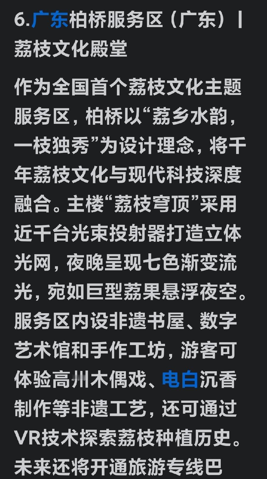 威水嗲! 才开通几个月的广东高州柏桥服务区,竟一跃成为全国九大服务区之一。 虽说它名为服务区,但此次上榜的全国九大服务区,皆集旅游景点与美食于一体,名气丝毫不输全国5A景区! 听闻未来的根子柏桥服务区还会开通旅游专线,若果真如此,柏桥服务区的人气必将持续攀升!