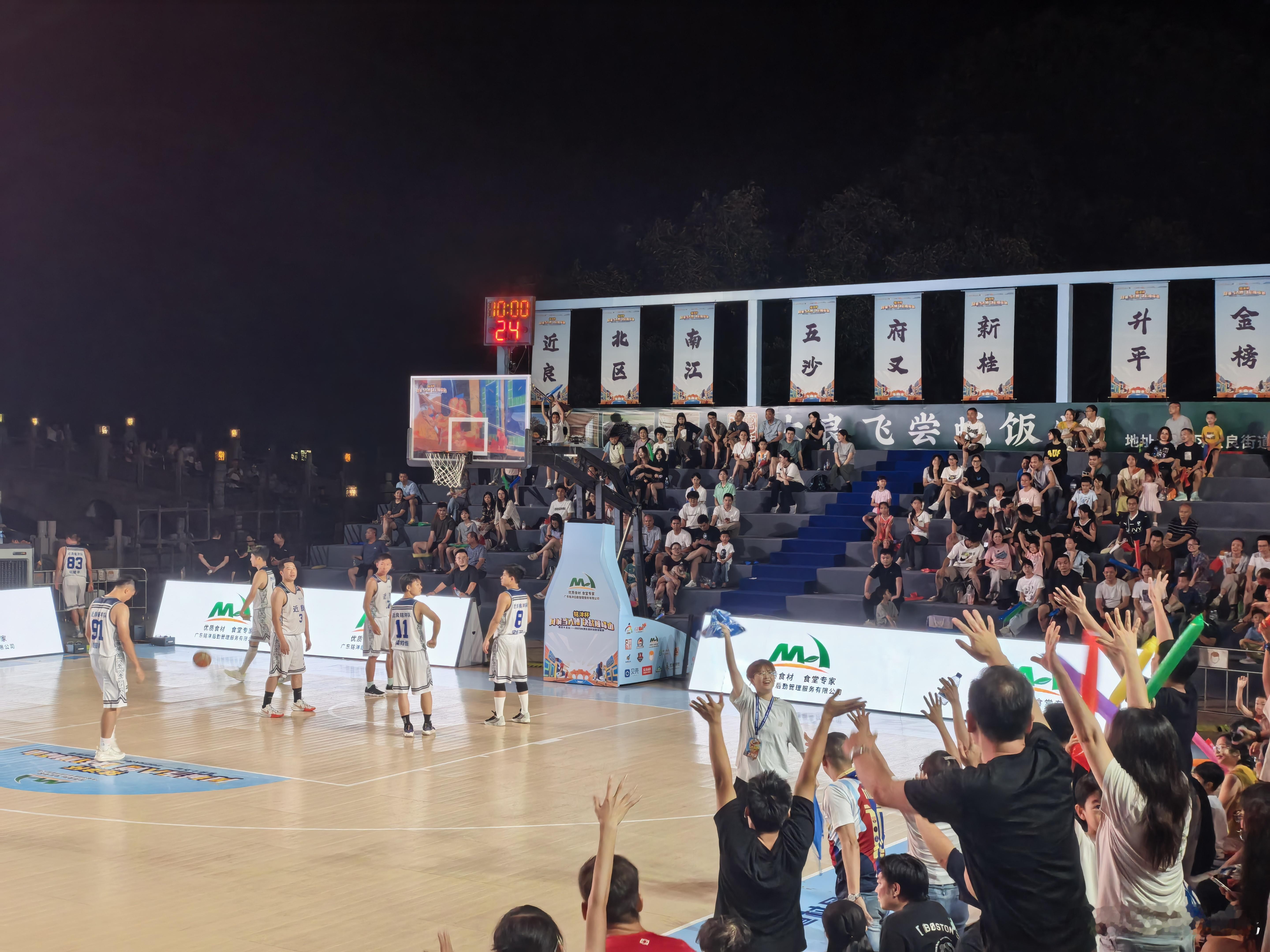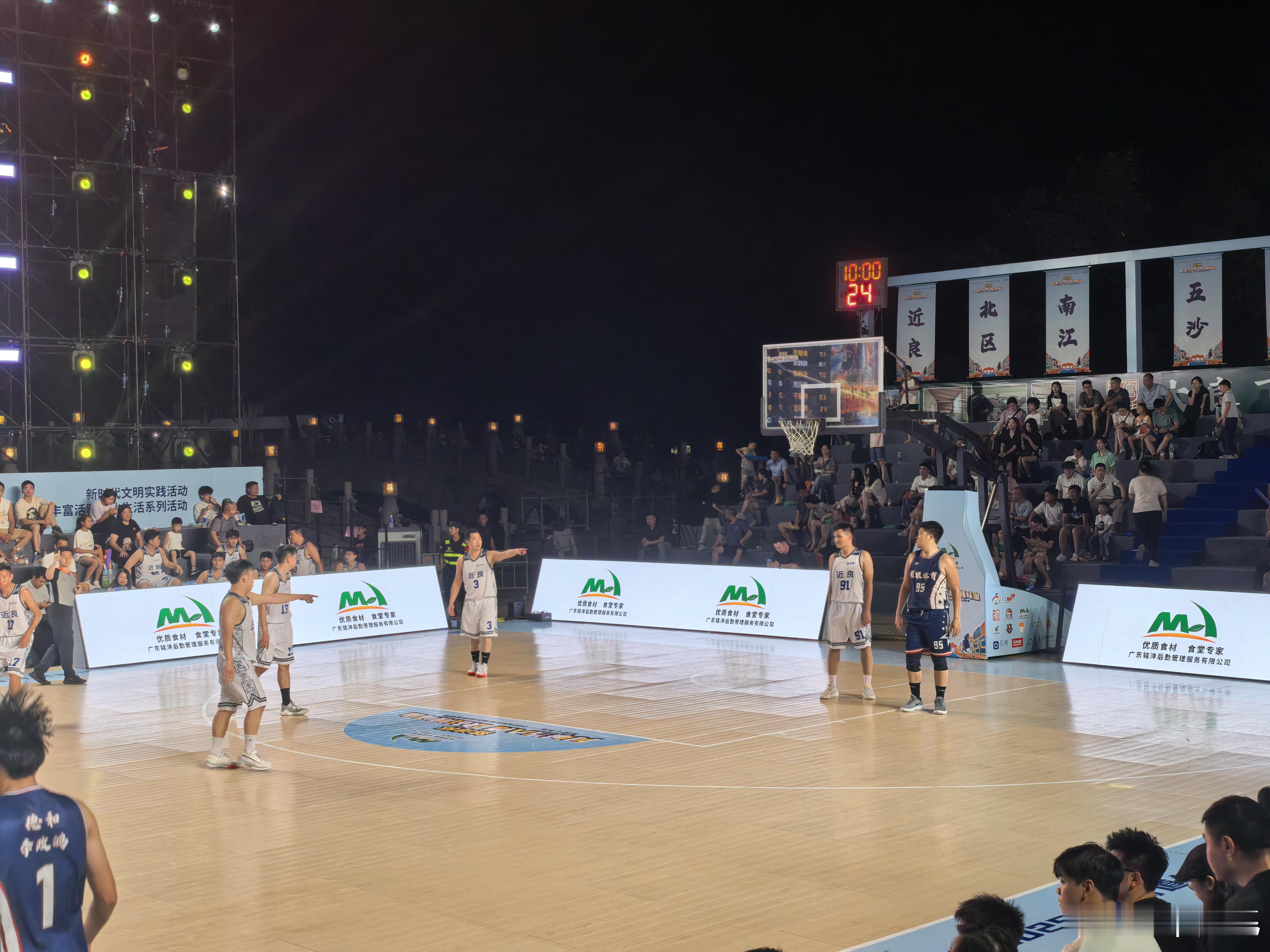 广东这边街道社区篮球赛,真热闹。场地、观众、音响都是一流的。门票10元,晚上9点