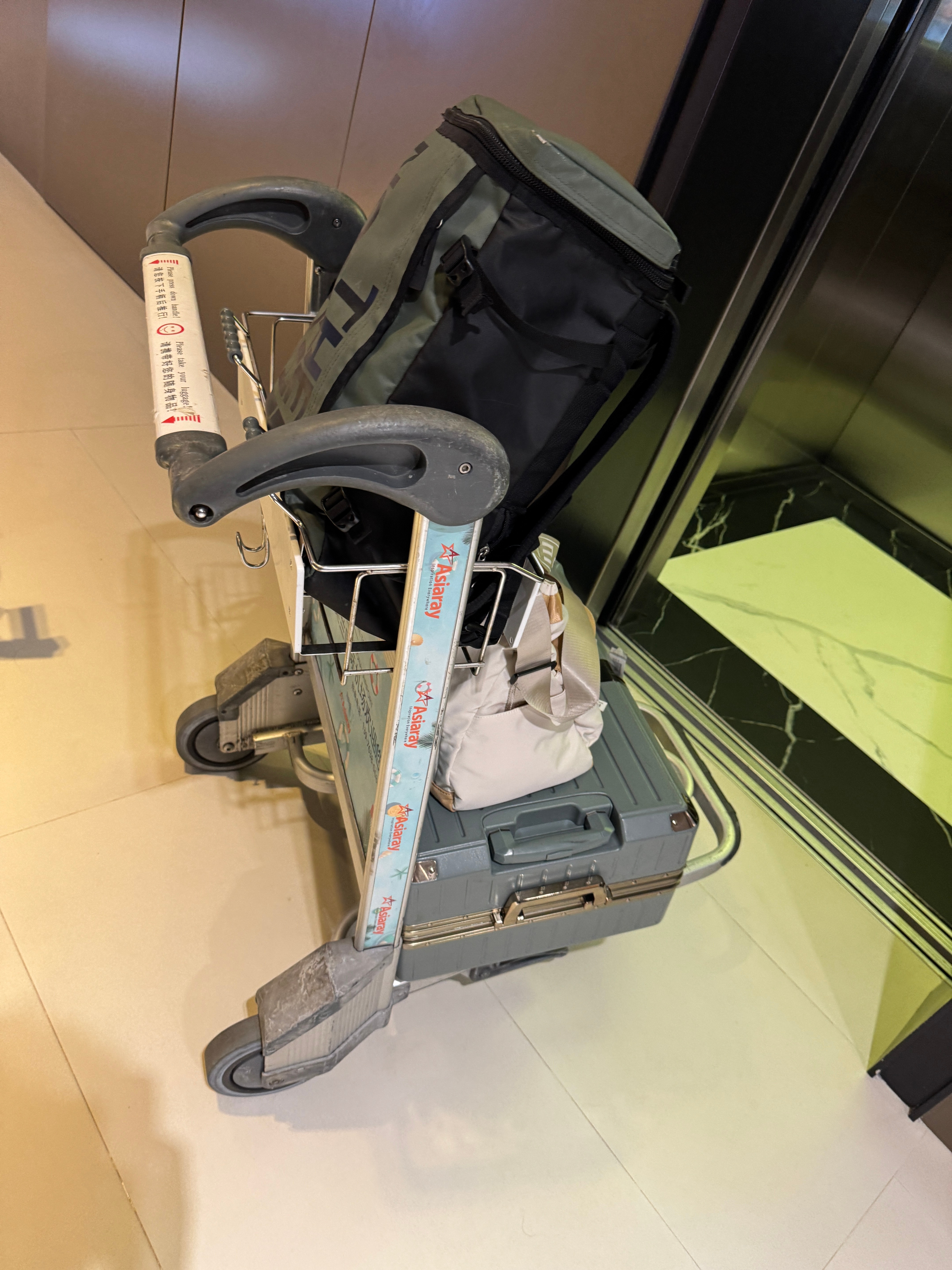 落地后跟着空乘走就完事儿了,拿完行李10分钟到酒店前台,行李车能直接推倒酒店门口,贼方便。
