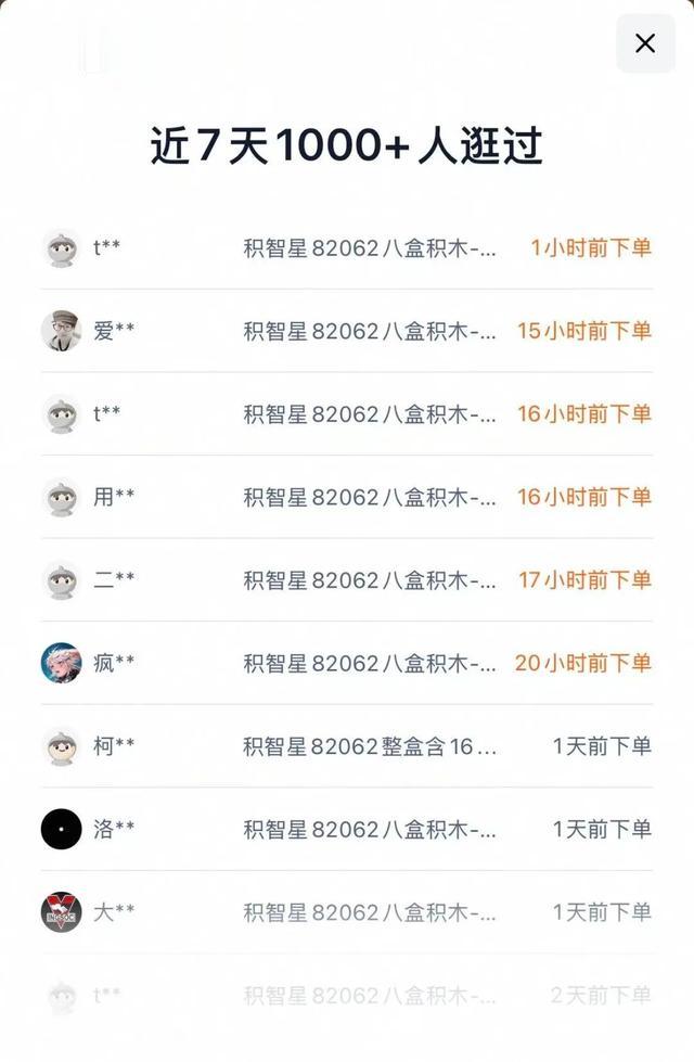 关于销售情况,店铺注明该款玩具适用年龄13岁,售价29.9元。平台显示“近7天1000+人逛过”,“周销量上涨10+倍”,为“店铺新品销冠”。最新销售记录为“1小时前下单”。