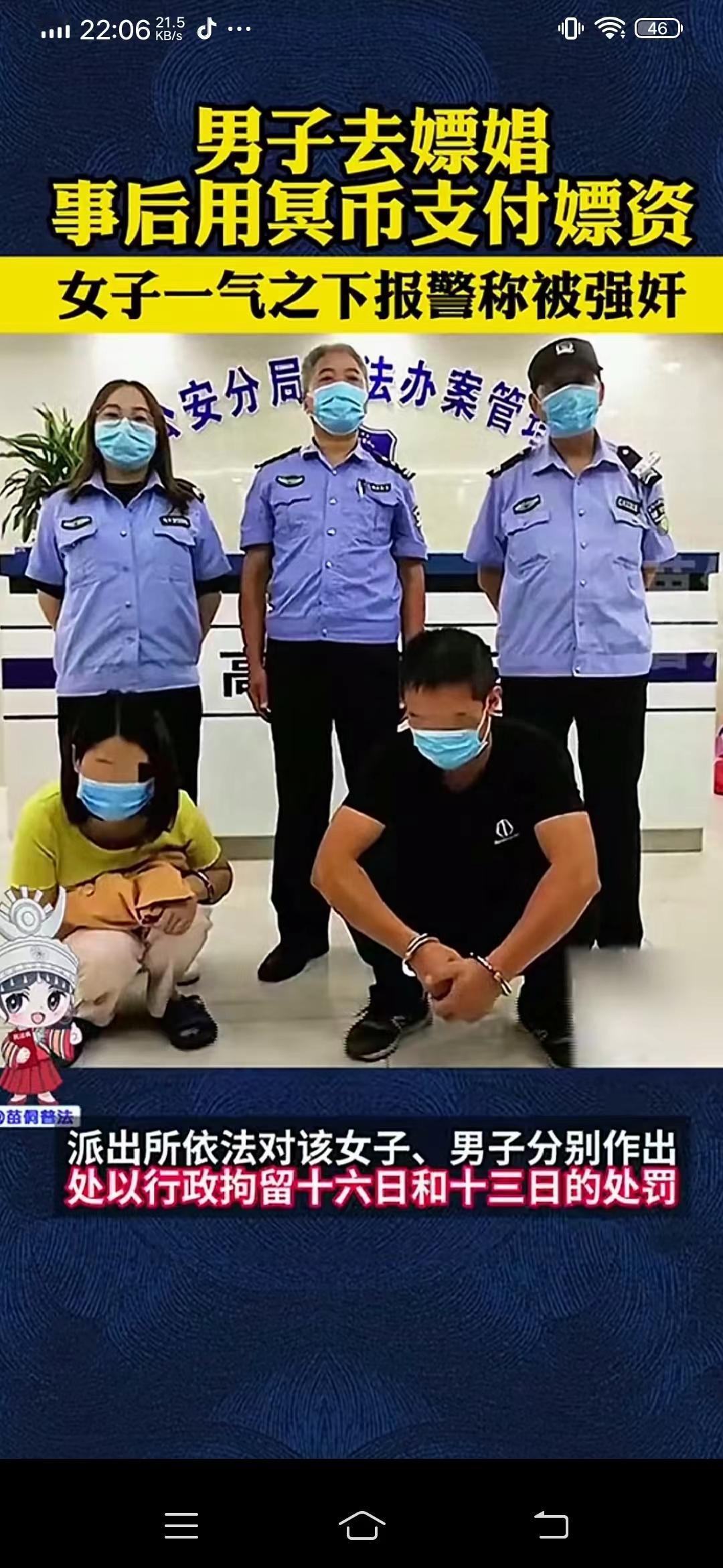 冥币付嫖资,荒唐闹剧终食果 近日,一起因“冥币嫖资”引发的闹剧,以涉事男女双双