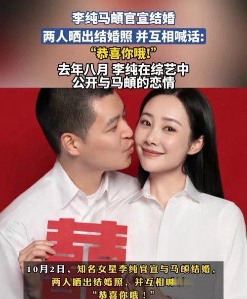 李纯马頔不是一时好是真的一直好演员李纯与民谣歌手马頔在社交平台同步晒出红底结婚照与结婚证,配文“恭喜你哦!”瞬间引爆热搜。这对跨越影视与音乐领域的恋人,在国庆假期以最浪漫的方式官宣人生新篇章,网友纷纷直呼“喜上加喜”。