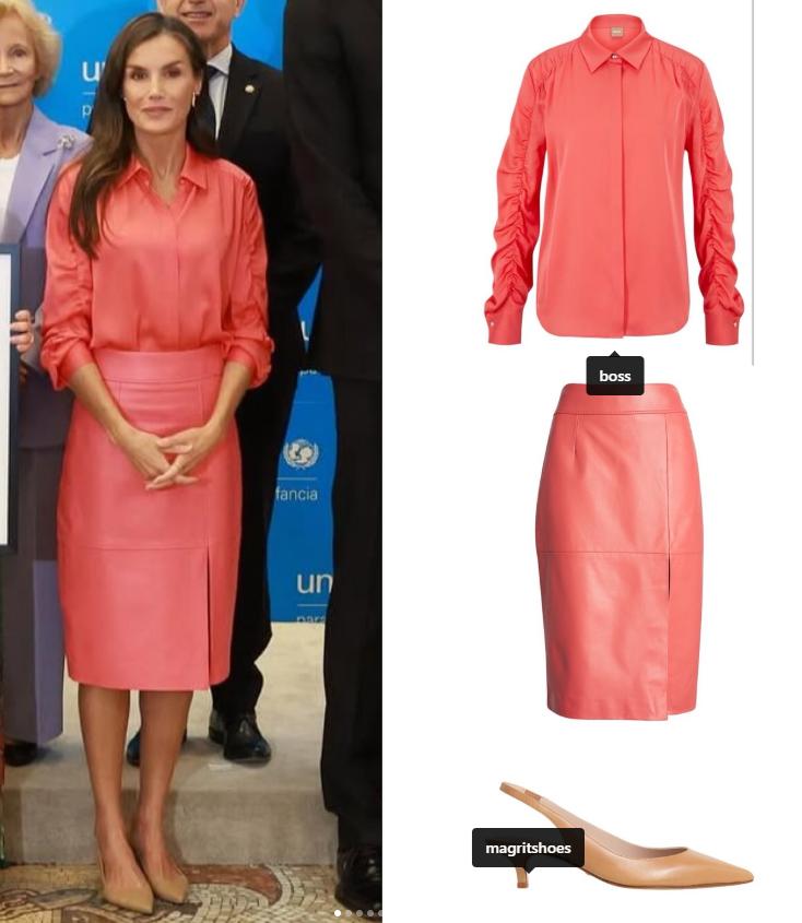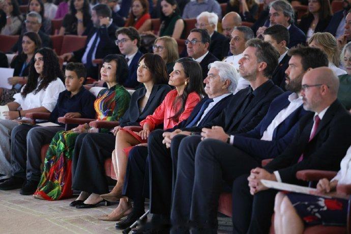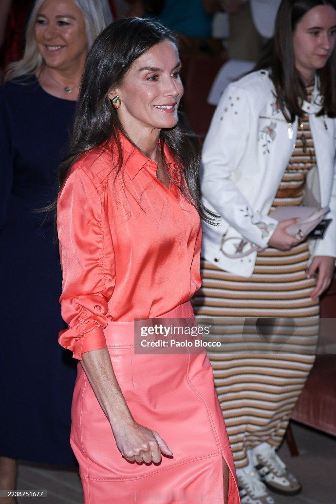 10月2日,西班牙王后莱蒂齐亚出席了在西班牙马德里西班牙国家研究委员会(CSIC)总部举行的联合国儿童基金会西班牙2025年颁奖典礼 获奖者可见两个巨人,代表加索尔欧洲基金会 (Gasol Foundation Europe),加索尔是西班牙篮球届颇有名的名宿哈,身高惊人 莱蒂齐亚王后出席此次颁奖典礼时,身着粉色真丝上衣,搭配同色系的皮裙。均来自她十分喜爱的品牌:hugo boss 自然光条件下还好,室内打个闪光灯效果真有点emmm,莱蒂齐亚这肤色不适合荧光色了