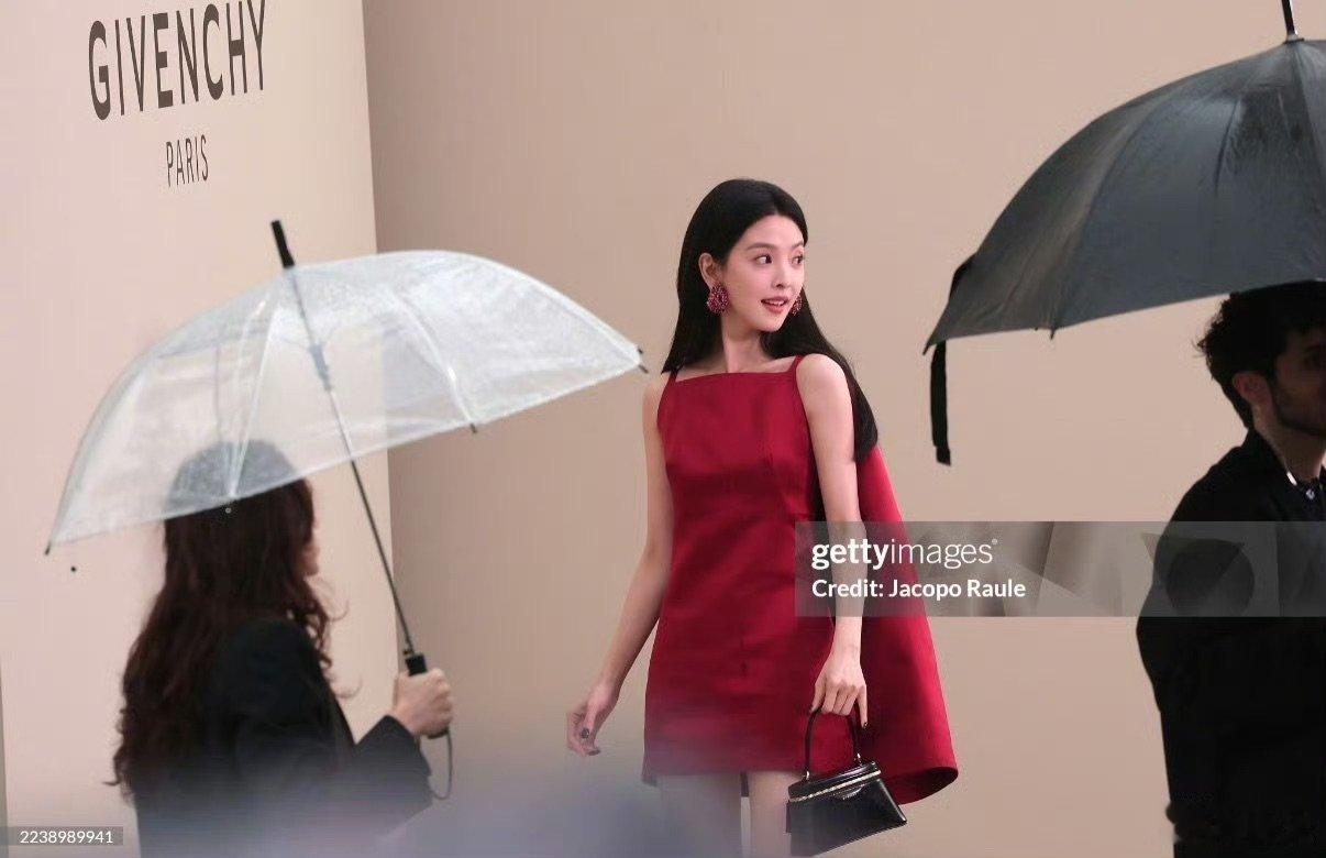 g社拍章若楠g社拍的章若楠看秀生图章若楠纪梵希秀场惊艳!红缎裙衬冷白皮,G社生图
