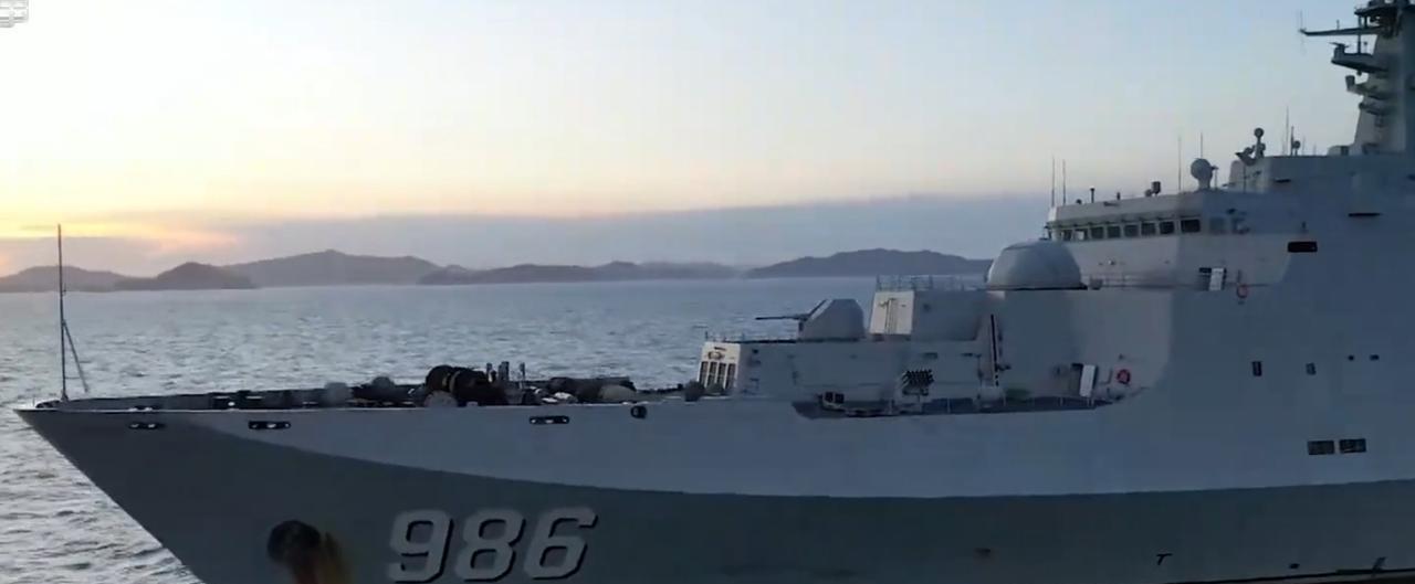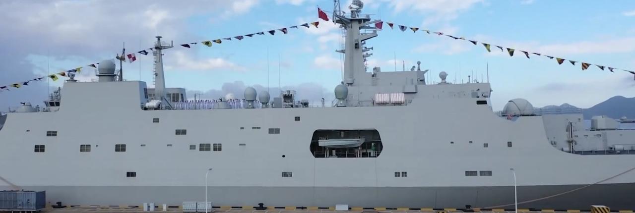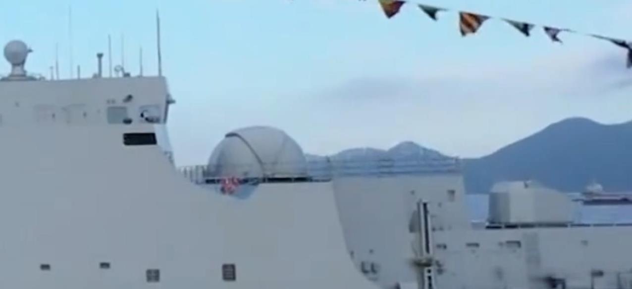 中国海军大方的展示,在国产071型综合登陆舰“四明山号986舰上,加装了国产燎原-1型舰载激光武器系统,舰上改装的位置在前甲板76毫米主炮后方驾驶台前下方平台上,反观为一个半球形可开启的半球壳,准备发射时壳体打开。
