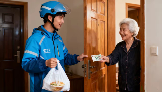 今天看到一则关于孤寡老人的新闻。上海有位83岁的老太太,有天她点了份外卖,等外卖