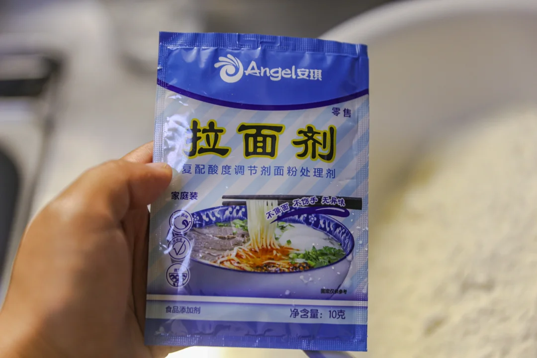2.加入拉面剂大大缩减了发酵的时间,拉面剂中的配料可以让面团更加稳定,操作起来更容易。