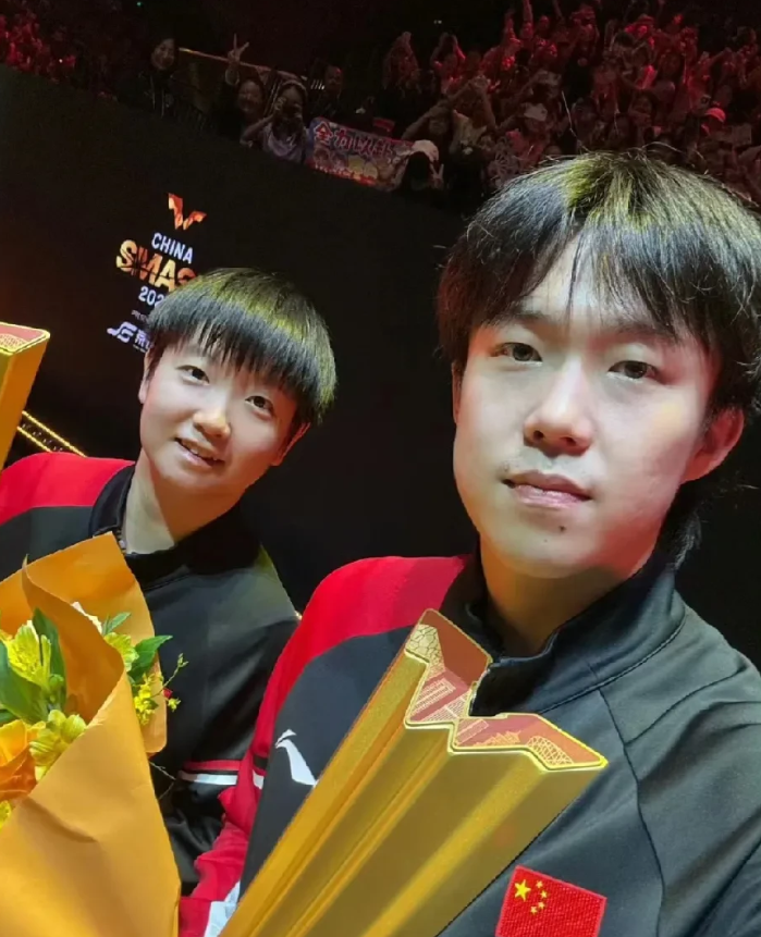 合照环节,楚钦看莎莎抱奖杯太重,主动接过相机,太暖心了。