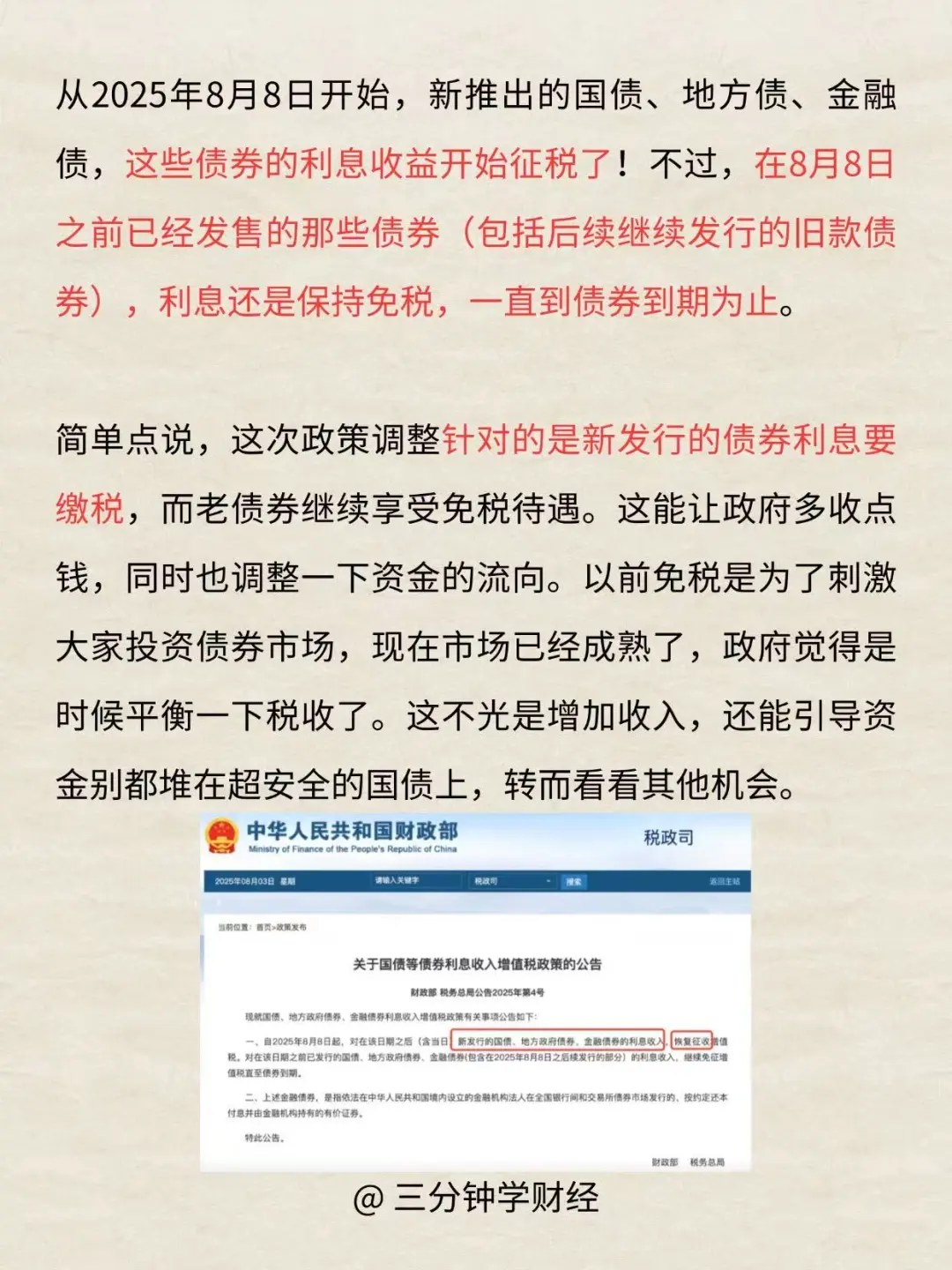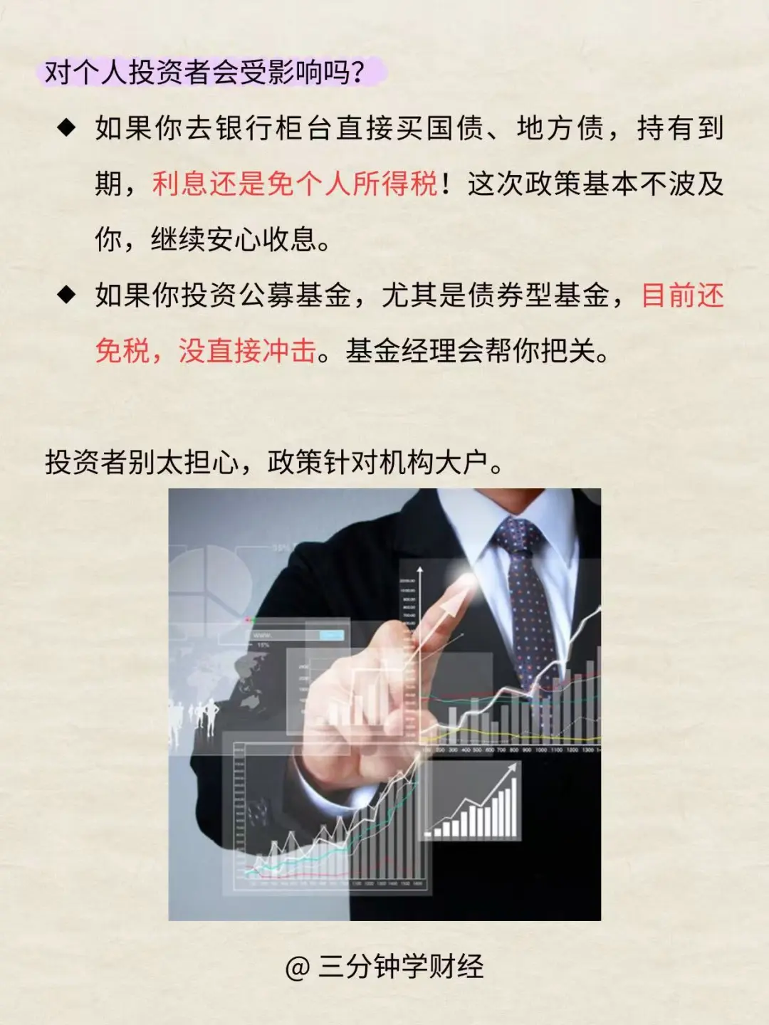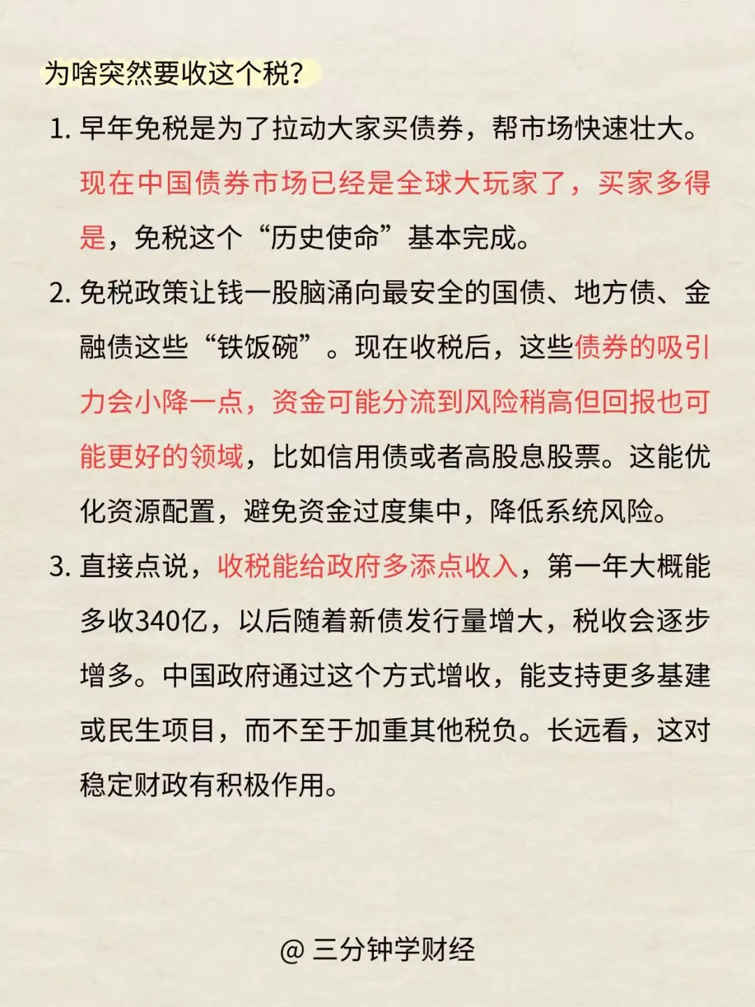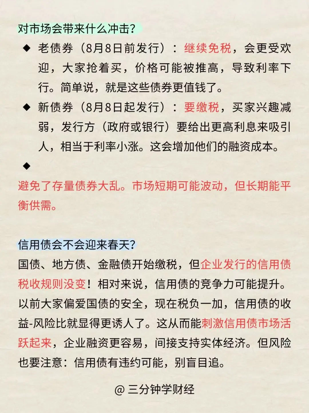 欢迎大家提出自己的观点看法,这些问题是开放式的,大家一起讨论和思考政策的背景和影响 问题1. 为什么政策只针对新债券征税,而不调整老债券?这是否会造成市场不公平? 问题2. 作为机构投资者,面对新债券3%或6%增值税,你会如何转向信用债或股票?风险机遇何在? 问题3. 这项政策如何间接支持实体经济?如果扩展到其他领域,对市场稳定有何作用?